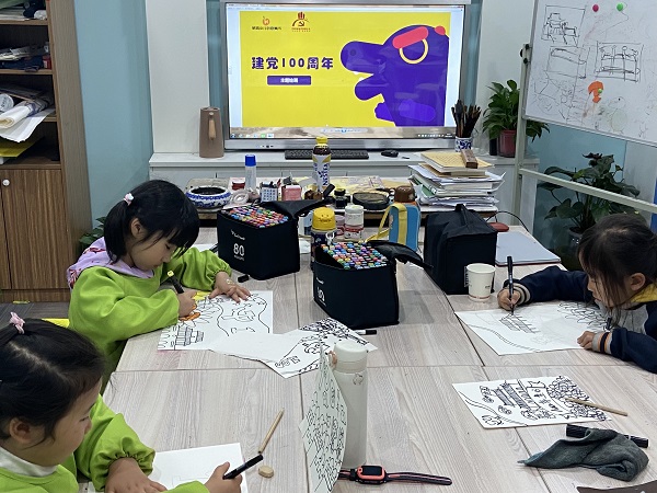 钱怡是齐民路社区的青年党员,也是这次活动的策划者。绘画开始前,钱怡组织孩子们,给孩子们上党课,讲党史故事。“现在的孩子们出生在一个美好的时代,生活优越、物质丰盈,他们对历史不够了解,更不知道新中国成立前的那段艰苦岁月。”课堂上,钱怡深入浅出地告诉孩子们中国共产党的由来,以及中国共产党的精神,随后又带领孩子们一起认识党旗、党徽等标识。此次党课,加强了孩子们对中国共产党的了解,对革命先烈的崇敬,也让孩子们知道现在的美好生活来之不易,我们要倍加珍惜。