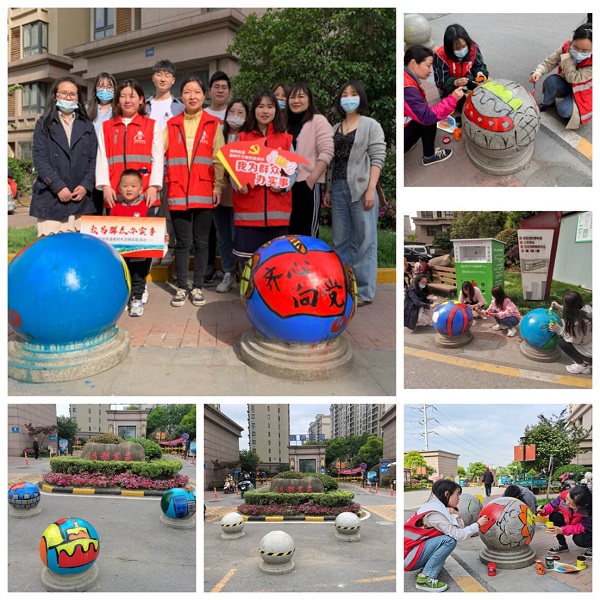 近日,为了让石墩子发挥应有作用,同时结合学党史、办实事,齐民路社区党总支联合航鸿美术的志愿者老师们在小区的石墩子上进行彩绘,让原本不起眼的球形石墩来了个华丽变身,原本普通的石墩子被手绘上了活泼生动的图案。“党史百年”“绿色环保”“永远跟党走”“齐聚民心 汇融万家”等社区党建文化元素跃然“石”上,吸引了居民的关注。