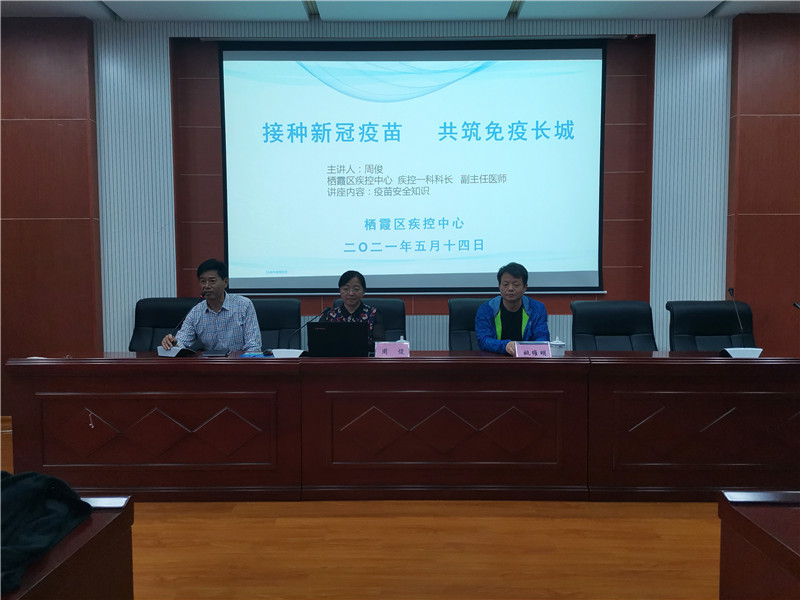2021年5月14日下午三点,栖霞区疾控中心组成的疫苗安全知识宣讲团队来到八卦洲街道社区教育中心,为街道所属8个村居的居民代表举办了一场疫苗安全知识培训。