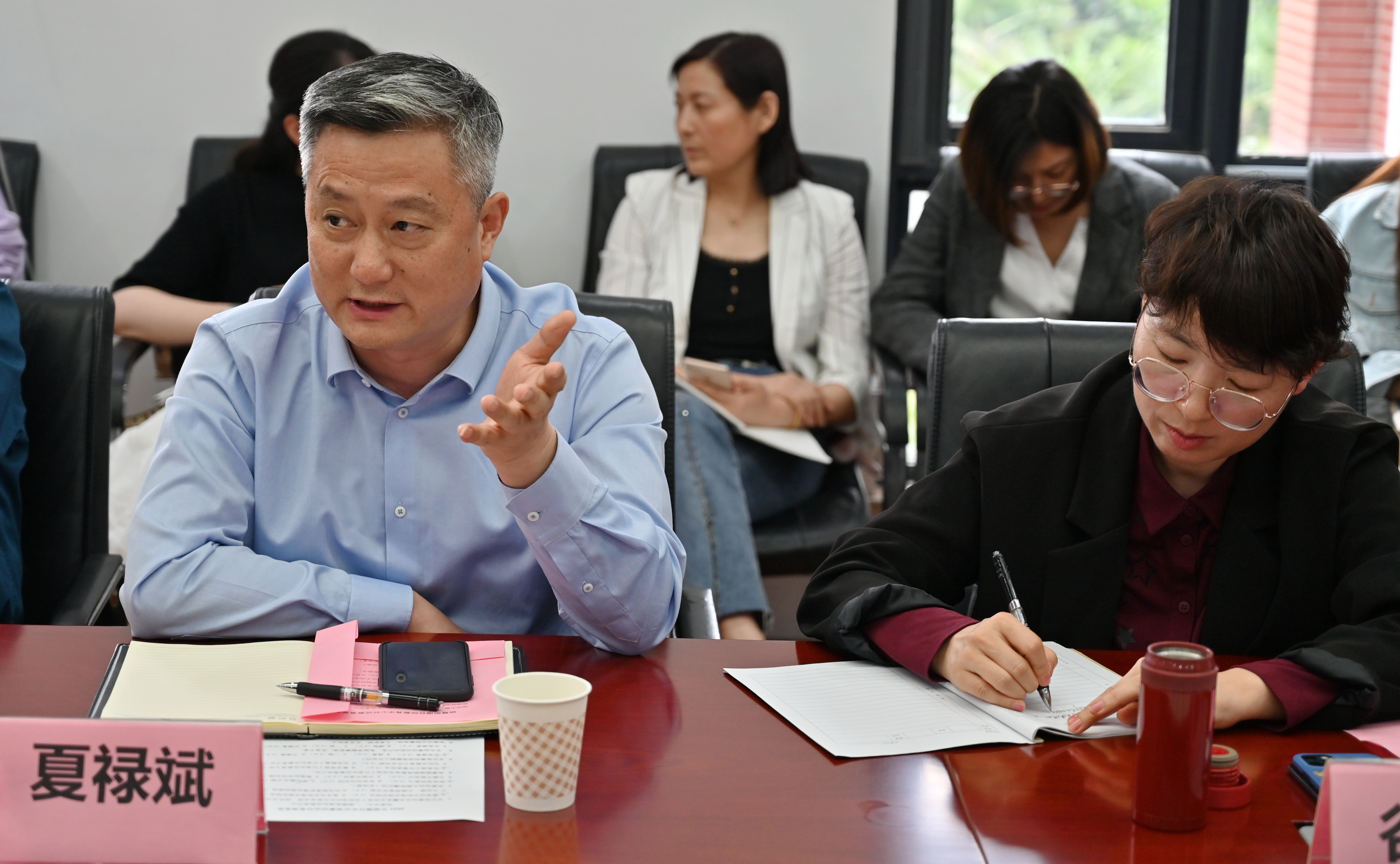观摩结束后,大家来到会议室进行集体研讨。研讨会由谷雨娥副校长主持。首先,栖霞街道社区教育中心吴明龙校长介绍了本次活动设计和初衷。接着,与会人员畅所欲言,纷纷表示此次活动主题突出,内容丰富,形势多样,有静有动,组织周密。随后,夏禄斌科长发言,栖霞区的观摩活动要充分介绍和宣传“善学栖霞”品牌,扩大栖霞社区教育的宣传力度和影响力。
