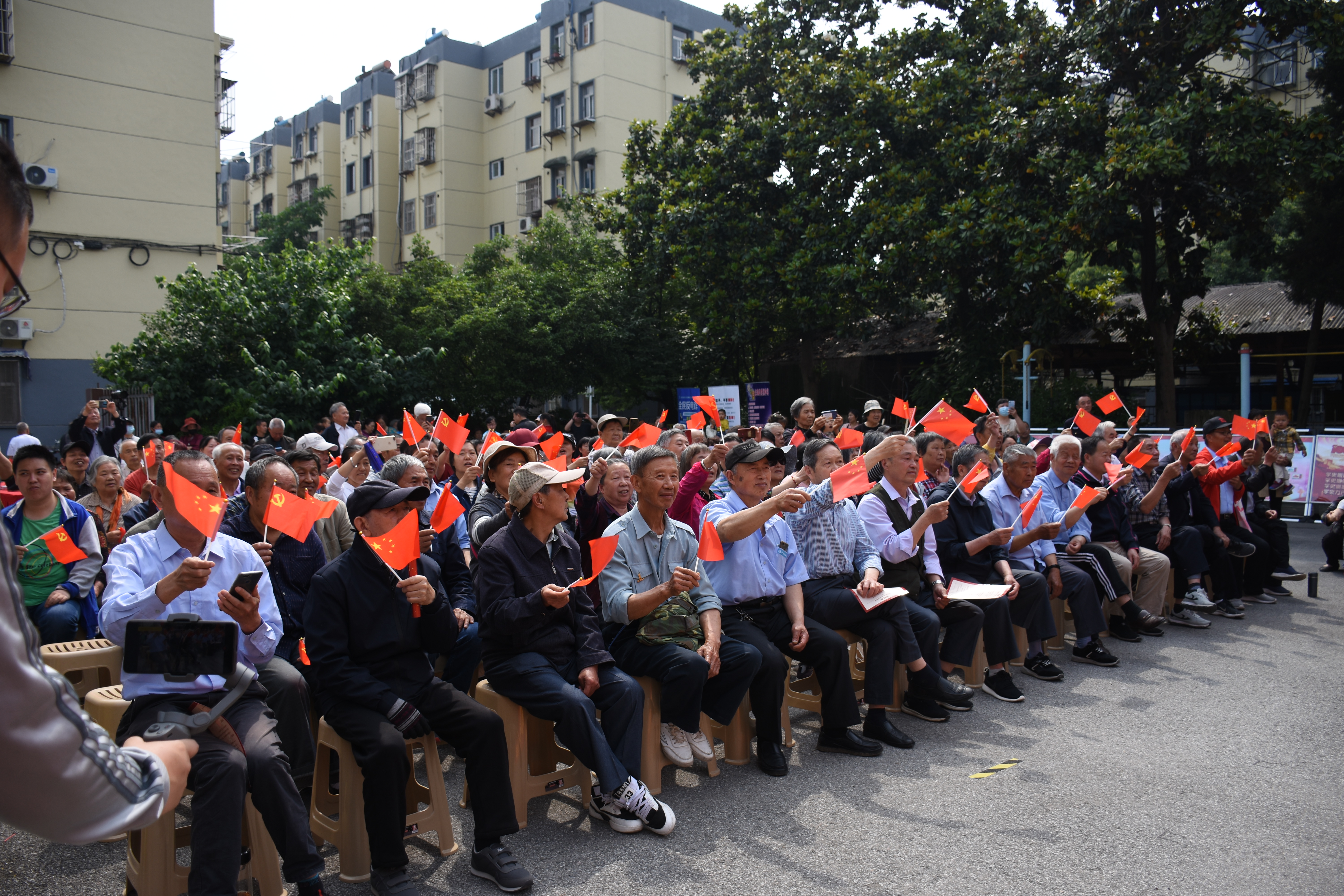 “啊,我们意气风发走进那新时代。我们唱着东方红,当家作主站起来……”一首《走进新时代》拉开了表演的序幕,听到熟悉的乐曲声,在场观众们高高举起手中的党旗挥舞起来,将气氛推向热闹。整齐划一的柔力球队表演、抑扬顿挫的诗朗诵、轻盈飘逸的舞蹈,引得居民们沉浸其中,打太极、写书法,一静一动、一文一武的表演让观众们不时传出阵阵掌声和喝彩,不少人拿出手机拍照录像,记录下一幕幕精彩瞬间。每一个节目都是由社区退役军人、居民和志愿者自发组织、排练、表演。其中《党的赞歌》让在场很多观众眼角湿润,回忆那段艰苦岁月被感动流泪。回望雄关漫道真如铁的过去,瞭望乘风破浪会有时的未来,进一步坚定理想信念,牢记初心使命,听党话、感党恩、跟党走,是所有党员的信仰,也表达了在场观众对党真挚的感情。
