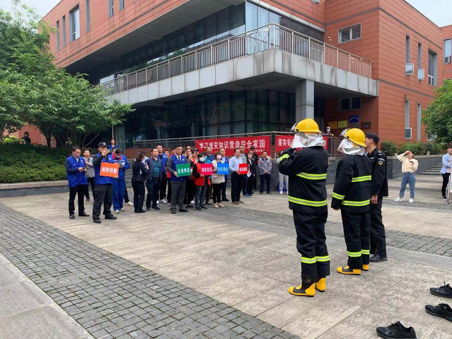 5月19日下午14:30分,各单位成员进入园区活动会场。首先,新尧新城管委会分管安全负责人邓少杰作开篇致辞,拉开本次活动的帷幕。随后,栖霞区消防救援大队消防特勤洪凯开展防灾减灾讲座,通过观看宣传教育片,学习防灾减灾手册,向大家讲解安全逃生的知识和应急逃生演练过程中的一些注意事项。在消防志愿者的引导下,在场人员遵从要点,有序地进行模拟疏散,安全员在集合场地清点疏散人数,本次应急演练从会议室撤离到安全区域用时2分18秒的时间。最后,区消防救援大队消防特勤在广场组织各消防代表队,展示消防衣的穿着要点及灭火器的使用方法,各代表队成员依次上前进行灭火演练。