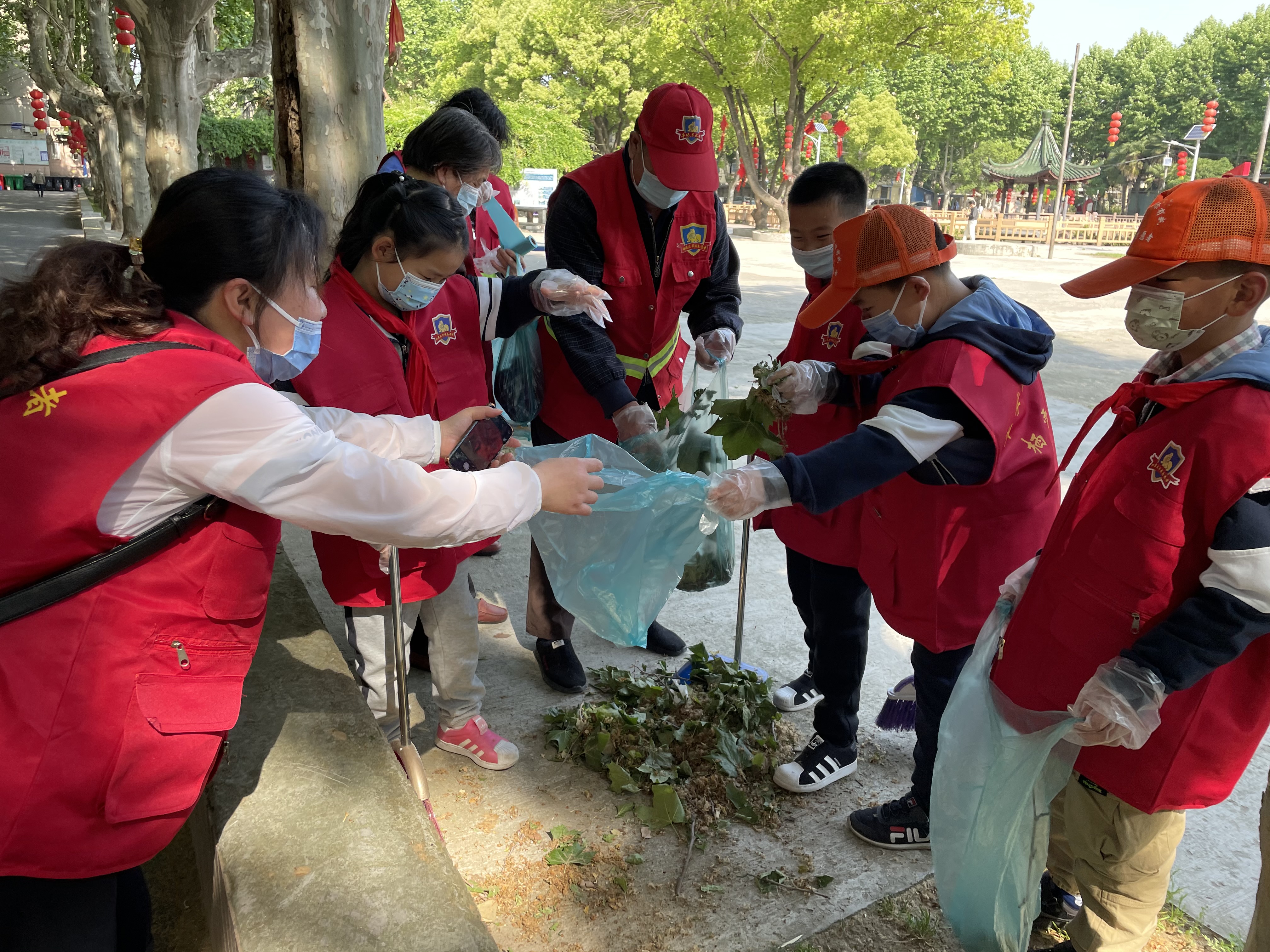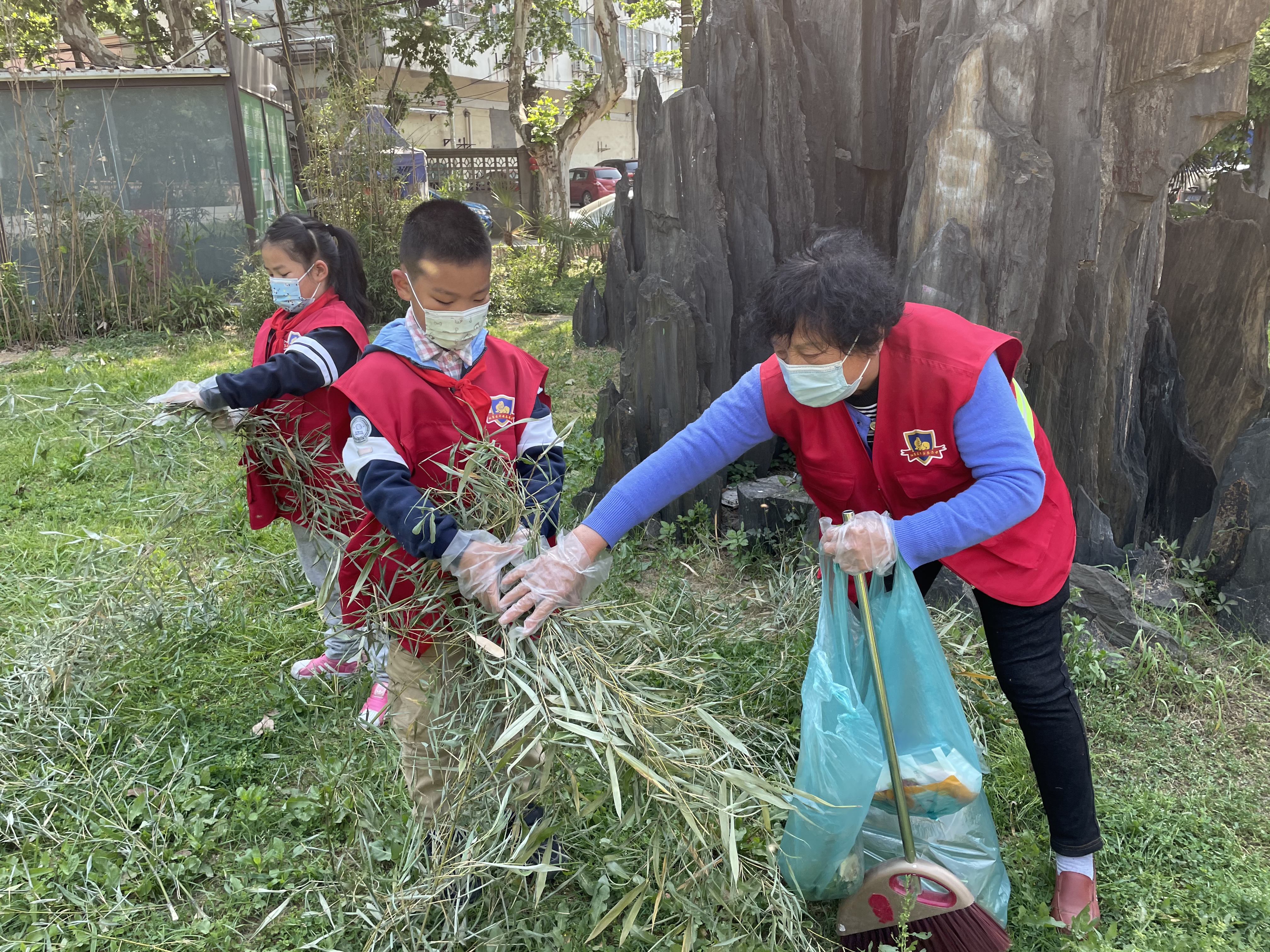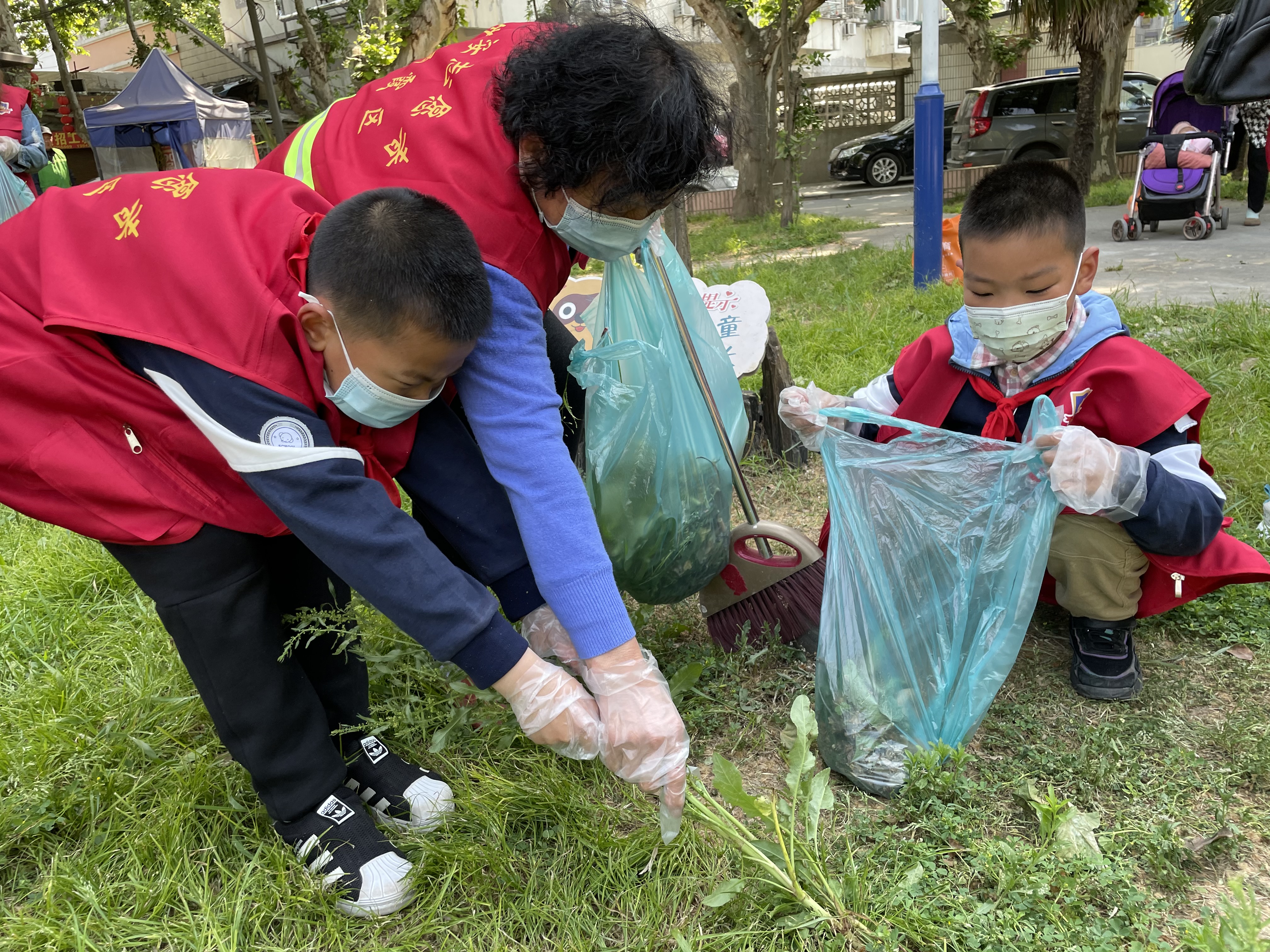 活动当天,艳阳高照,小志愿者们准时在社区门口集合,他们头戴志愿者帽,身穿红马甲,带上一次性手套,有的拿扫帚、有的拿垃圾袋,和社区保洁员一起打扫伯乐园健身休闲广场,捡生活垃圾,并拔除绿化带丛中的杂草,扮美扮靓“伯乐园”。经过半天的志愿活动,社区伯乐园变得干净整洁,得到了来往行人的一致好评。随后,大家参观新联二村环保屋,向垃圾分类督导员学习“垃圾分类”知识,把自己捡的垃圾现场进行垃圾分类、投放。