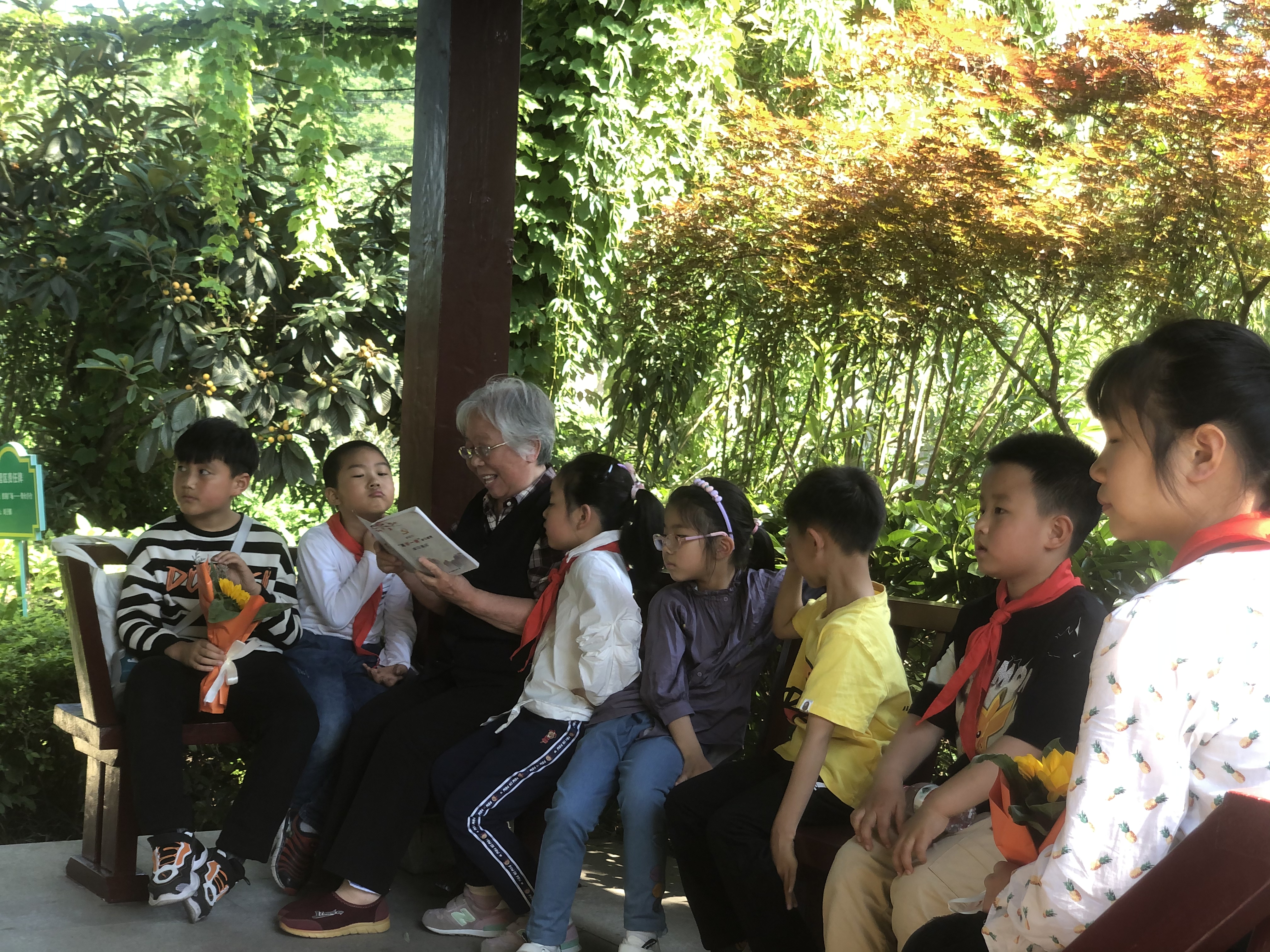 授课结束后,“红领巾”们与邹奶奶高唱红歌《没有共产党就没有新中国》,歌声嘹亮,风声,鸟声,歌声,声声入耳,漫步长廊之中,踱步凉亭之内。