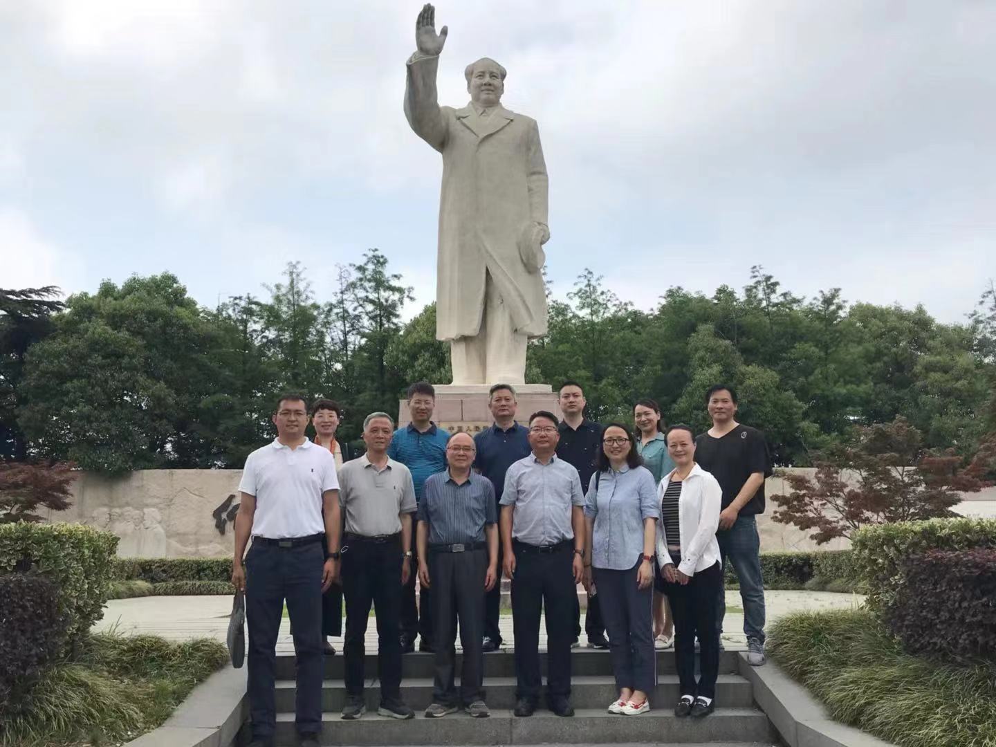 调研组一行首先来到栖霞街道十月村毛主席塑像纪念公园。江苏省社区教育优秀志愿者、栖霞街道“丹枫乐学故事会”宣讲团成员胡国富同志为大家讲解1956年1月11日毛主席视察十月村的情景。对毛主席提出的“组织起来,走共同富裕的道路。”历史背景和现实意义进行了解读,让现场所有同志接受了一段鲜活的党的“四史”教育,赓续红色基因。