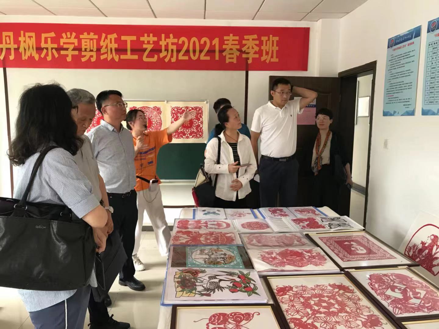接着,调研组参观了“金陵学堂·名师工作室——丹枫乐学剪纸工艺坊”。“丹枫乐学剪纸工艺坊”在2018年5月被江苏省社会教育服务指导中心评审为社区教育“省级名师工作室”。名师工作室领衔人葛传民是南京市剪纸非遗传承人,江苏省乡土人才“三带”新秀。