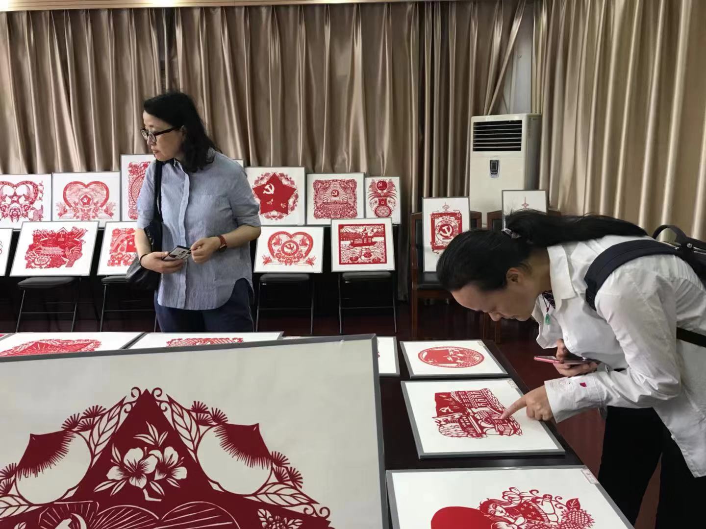 今年是中国共产党成立100周年,剪纸名师工作室成员围绕该主题创作了近百幅作品在街道巡回展览,该展览被《南京日报》报道。调研组一行在参观“献礼百年,剪花绽放”庆祝中国共产党成立100周年剪纸作品展时,对名师工作室成员围绕主题精巧构思创作的作品及精湛剪艺赞不绝口。