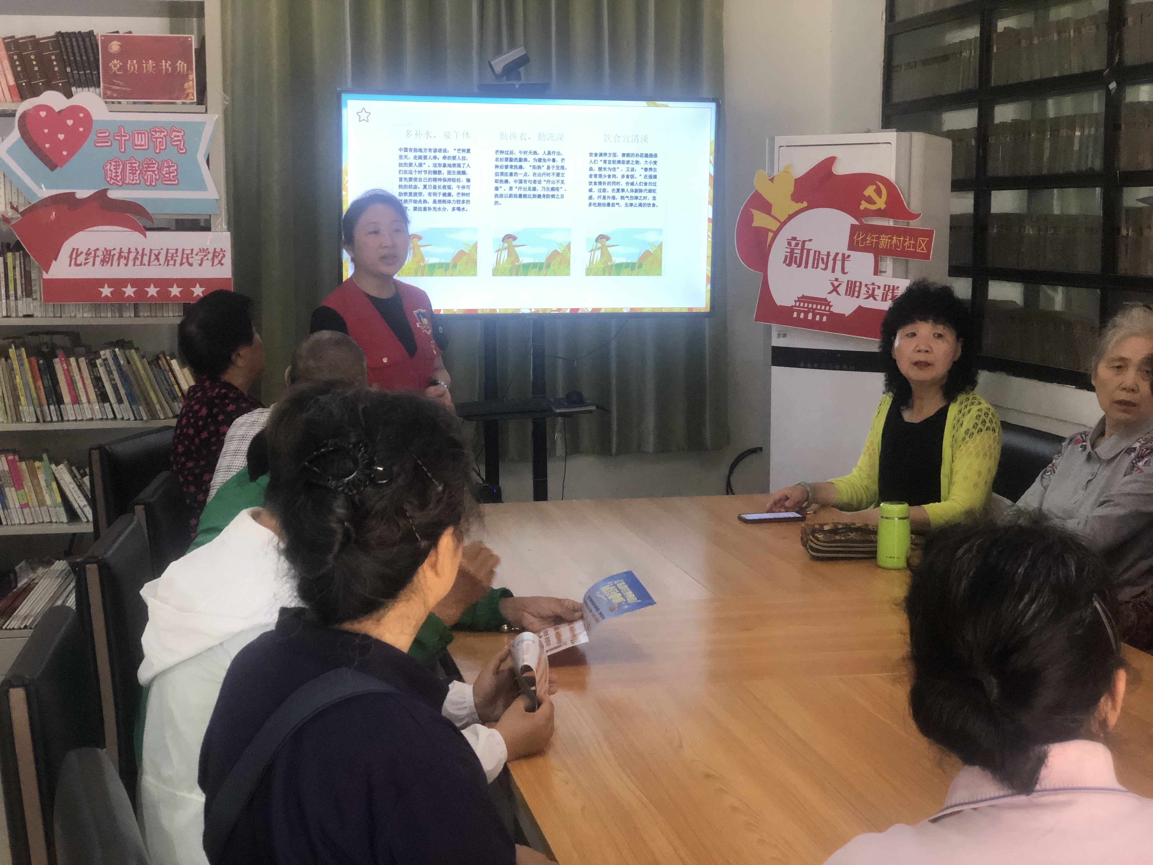 芒种是一个反映农业物候现象的节气,芒种就是忙着耕种,此时麦类等有芒作物已经成熟。芒种,是农历二十四节气中的第9个节气,在公历6月5日至7日前后,此时太阳到达黄经75度,表示仲夏时节的正式开始。2021年6月5日18:51:57进入芒种节气。化纤新村社区居民学校开展了芒种健康养生讲座,之后还联合万寿医院为居民们提供了便民义诊服务。