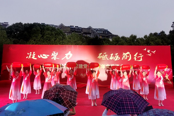 晚会在细雨中开始,在大雨中结束,越下越大的雨没有妨碍演员们的敬业,也阻碍不了群众的热情。这场红色主题的文艺晚会讴歌了党的光辉业绩,展现了群众积极向上的精神风貌,代代传承的红色精神将永远激励每一个党员和群众在新时代奋斗拼搏,共赴更美好的明天。