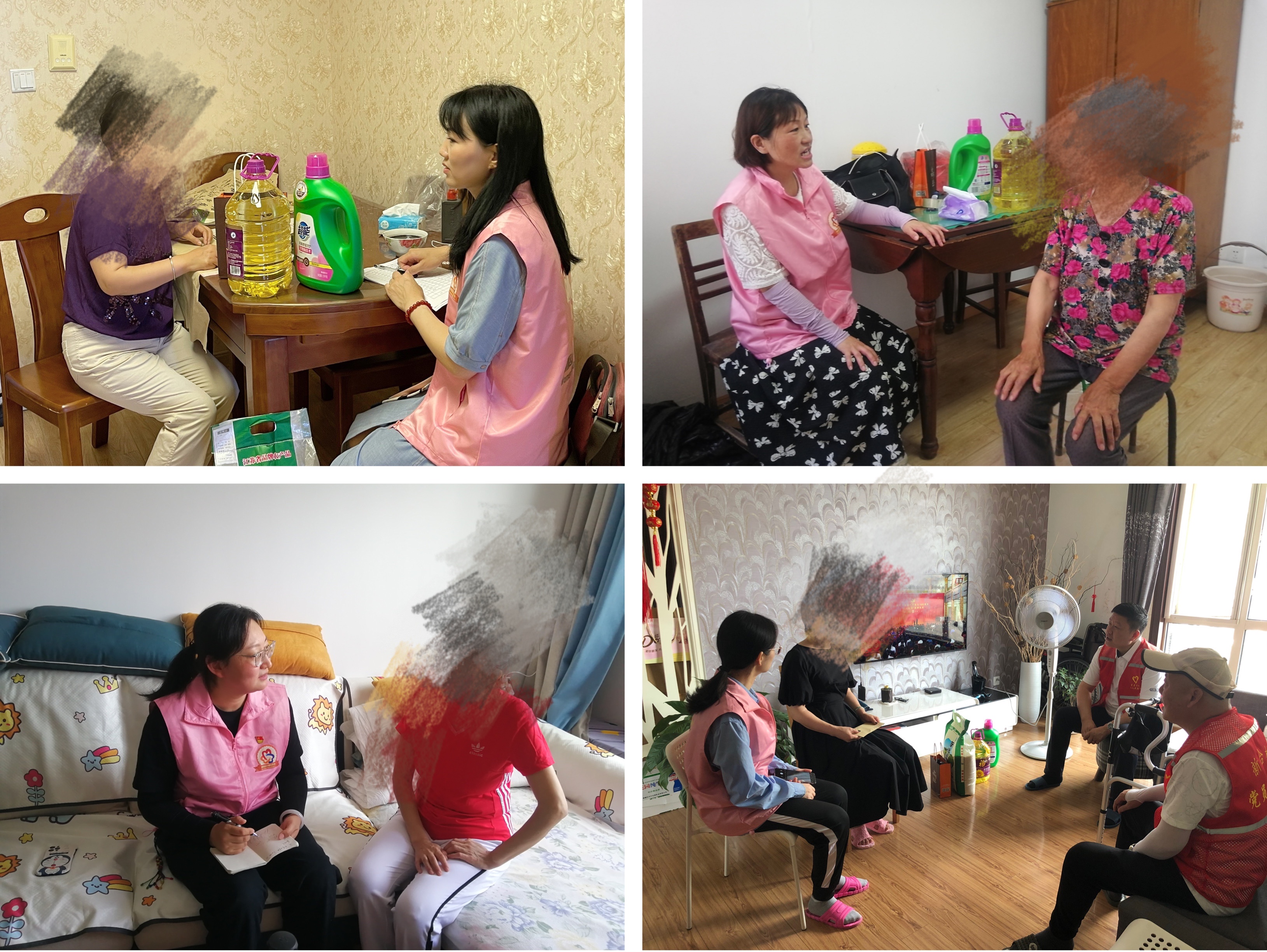 新合村社区工作人员一起组成五个慰问小组,连续五天时间,分头走访了80户困难家庭,其中有困难妇女家族16户,残疾妇女12户。
