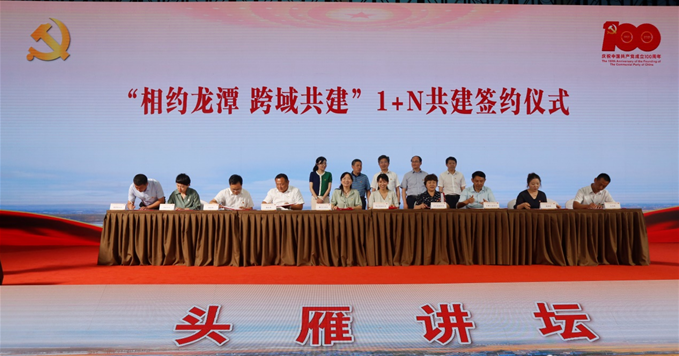 值得关注的是,在本次“头雁讲坛”上,栖霞区委书记黎辉为“相约大美龙潭 乡村振兴专家顾问团”成员颁发了聘书,希望各位专家充分发挥自己的优势和特长,为龙潭乡村振兴建言献策、共绘蓝图,开辟大美龙潭的另一方天地。同时,现场还举行了“相约龙潭 跨域共建”1+N共建签约仪式,龙潭街道邀请毗邻兄弟街镇、省内明星村居共建签约,探索建立新形势下的区域化党建实现机制,积极打造“毗邻”生态圈。