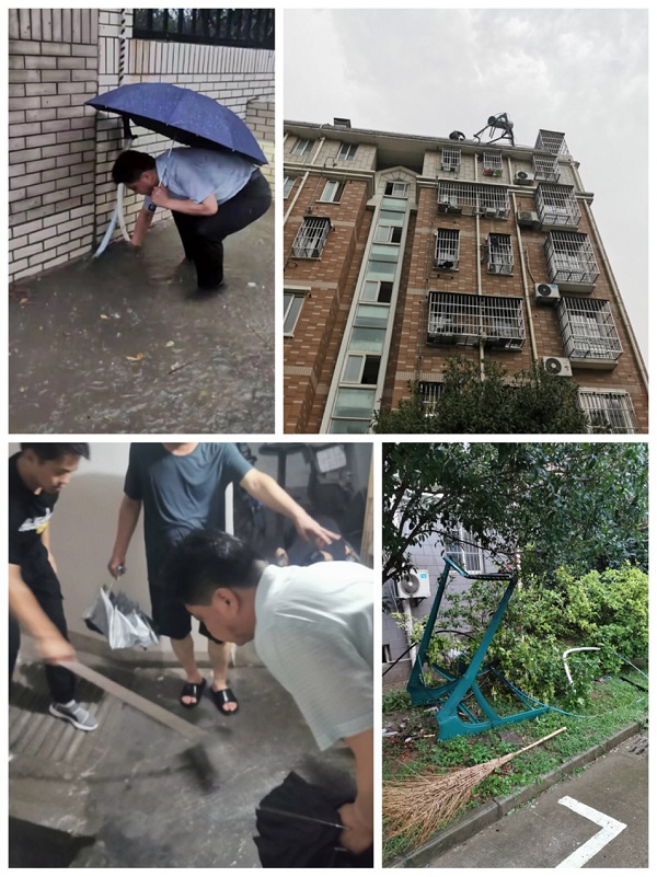 暴风雨来的时候,大家都在干啥呢?当然是躲避在家的港湾里。但是闻兰社区却有这样一些人,他们冒着风雨,甚至危险,出现在积水的地下室、苑内积水区域,还有居民楼屋顶。