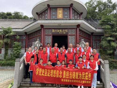 为创新学习形式,青田雅居社区新时代文明实践站组织党员、群众在晓庄陶行知纪念馆开展了实地学习活动。在纪念馆内,大家对馆藏的实物和图片进行了仔细的了解学习,同时现场开展了学习心得分享,老党员张师傅说:“今天对陶先生的一生和他的重要经历有了深入的了解和学习,作为老党员要发挥党员模范带头作用,要充分发挥无私奉献精神,协助社区参与共同治理,同时也给子孙做个榜样。”