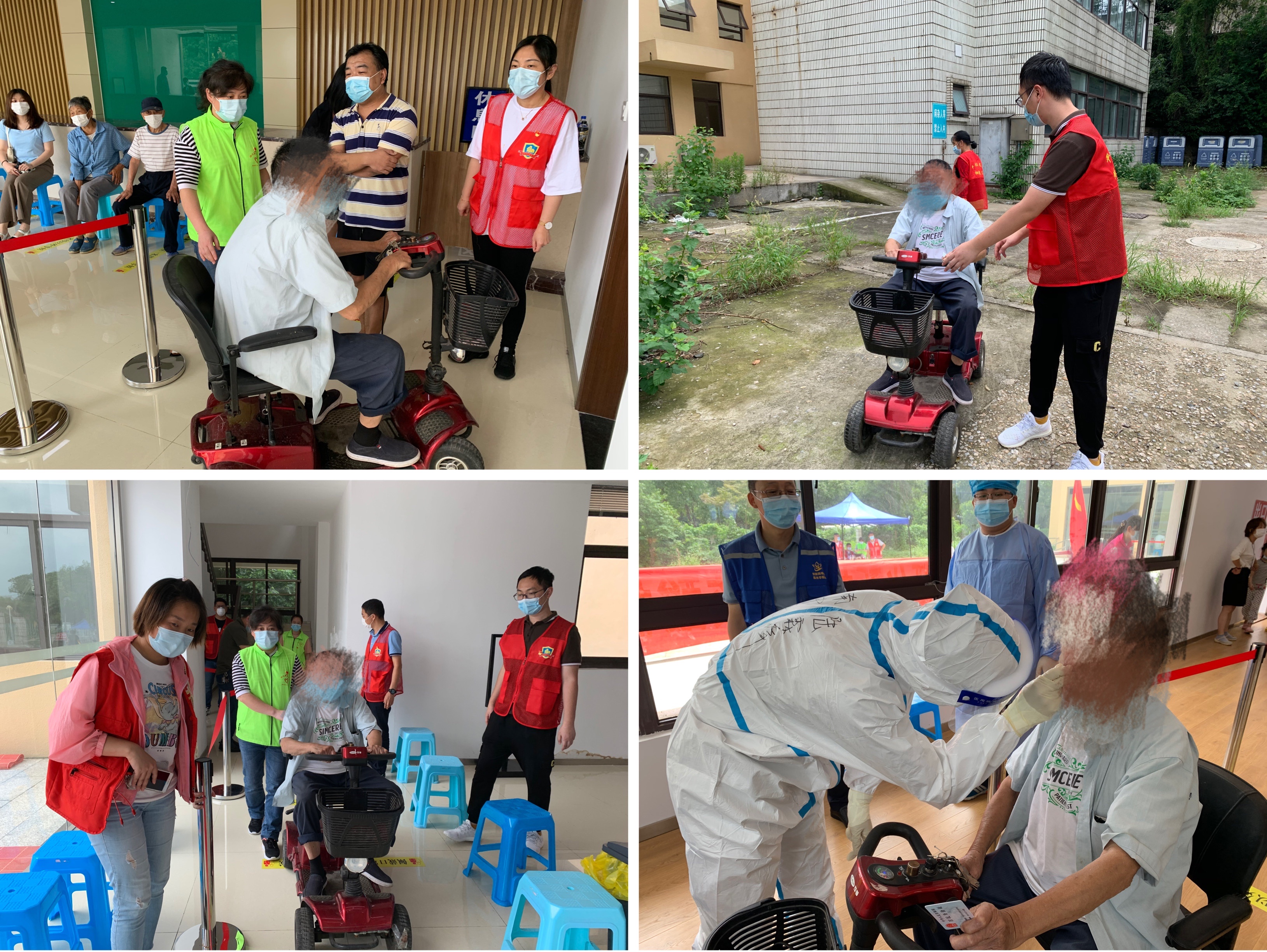 7月29日,在第三轮核酸检测采样现场,一名老人因腿脚不便,开着助力车便过来了。