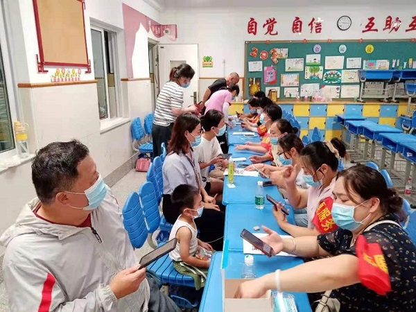 青年教师王朝琴是西岗幼儿园天佐路园的副园长,7月22日至8月3日她带领集团30余名教职工配合街道开展了四次核酸检测工作。“我们负责协助社区老人、孩子登记身份证录入信息,由于检测对象的特殊原因,一句话往往要重复好几遍。遇到脾气古怪、乱发脾气的老人,我们就像哄孩子一样,面带微笑、轻声细语地解释。在没有空调的教室一待就是17、8个小时,为了减少穿脱防护服的麻烦,大家尽量少喝水、不喝水。我们没有惊天动地的壮举,也没有感人肺腑的话语,每一位志愿者都用实际行动,默默地为守护居民的平安健康。”