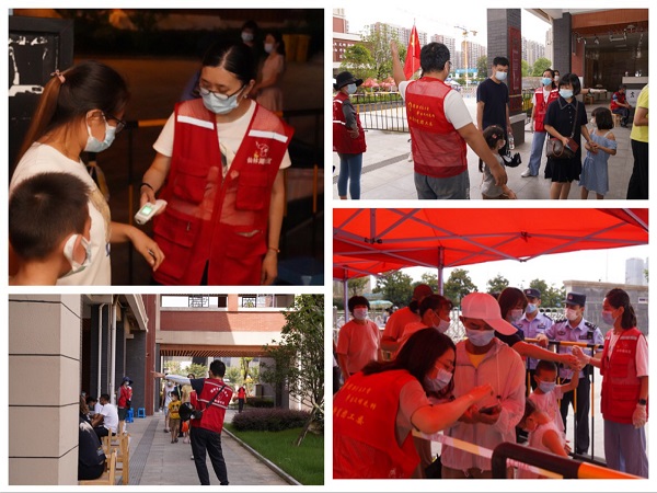 疫情就是命令、防控就是责任。仙林湖社区党委委闻令而动,众志成城,完成“规定动作”,创新特色做法,建立全民核酸检测“六级保障制”:一级为在检测点外设置“1米线”的间隔,“志愿红”烈日下引导居民有序排队;二级为检测点进门处安排专人维持秩序,查看苏康码,测量体温;三级为等候区按照10人一组有序排队,志愿者协助人员扫码登记信息;四级为引导区工作人员有序叫号,根据采样速度合理安排人员进场;五级为登记区扫码登记10人采样信息,做细做实,确保准确无误;六级为志愿者有序带领10人进入采样区,安排人员有序采样,引导采样后快速离场。