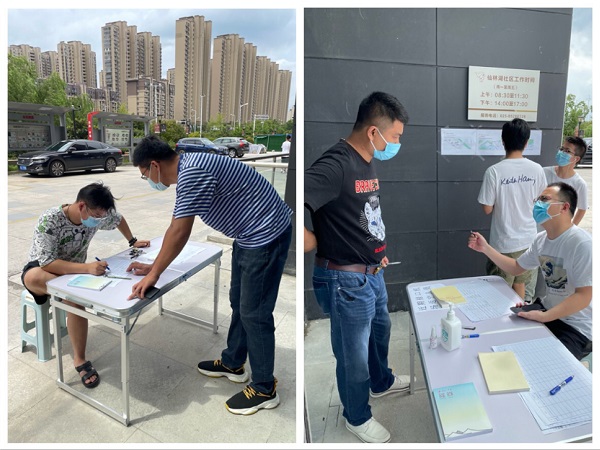 仙林湖社区党委以“严、快、细、实”的作风分工到人,落实责任,设计流程、布置现场、准备物资、消杀防护、保障后勤、现场检测等环节稳扎稳打,层层落实。志愿队伍循环带领居民前去检测,一天走路23公里位居“微信运动”榜首令人惊叹;消毒液、手套、口罩、防护衣、面罩等防疫物资的及时补充和更换井井有条令人赞叹;工作人员中晚饭错峰交替使用,确保岗位“不缺人”,检测队伍“不停歇”令人感叹。多措并举推动四轮全员核酸检测采样平稳顺利进行。