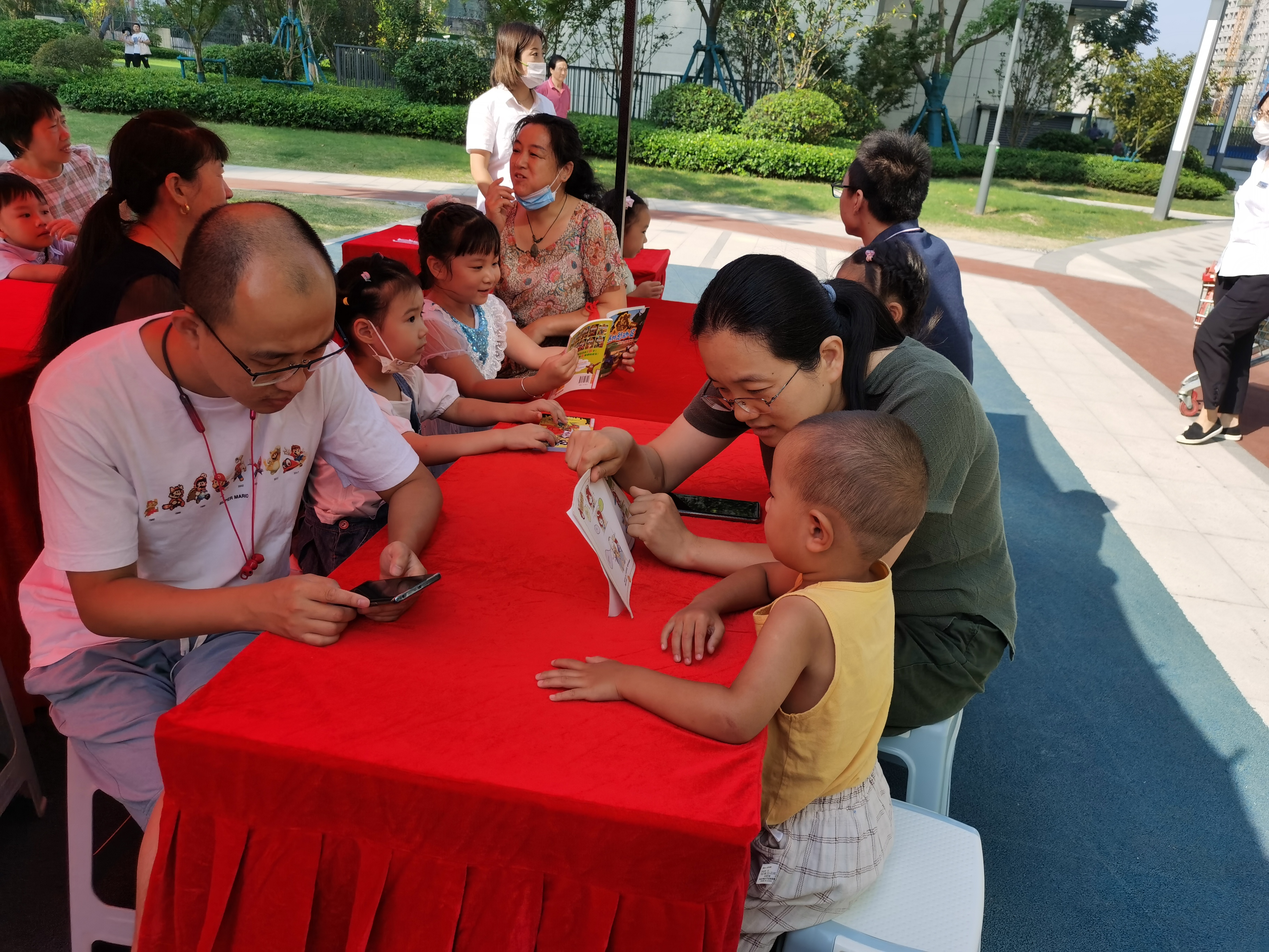 为了激发孩子的阅读兴趣,促进亲子之间的沟通交流,9月19日,摄山村社区居民学校在华侨城翡翠天域星园小区里开展了一场趣味横生的亲子阅读课堂,共有10余对亲子参加本次绘本阅读活动。