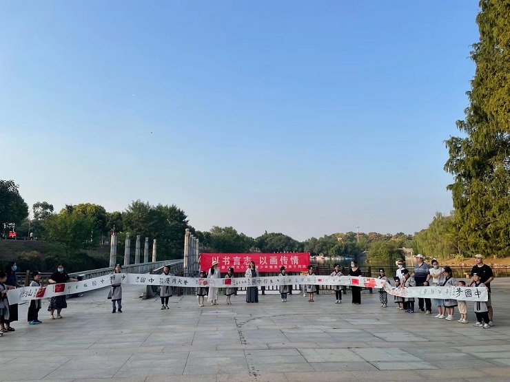 活动现场,小朋友们以书言志,以画传情,满怀激情,用书画作品抒发自己的爱国情怀。
