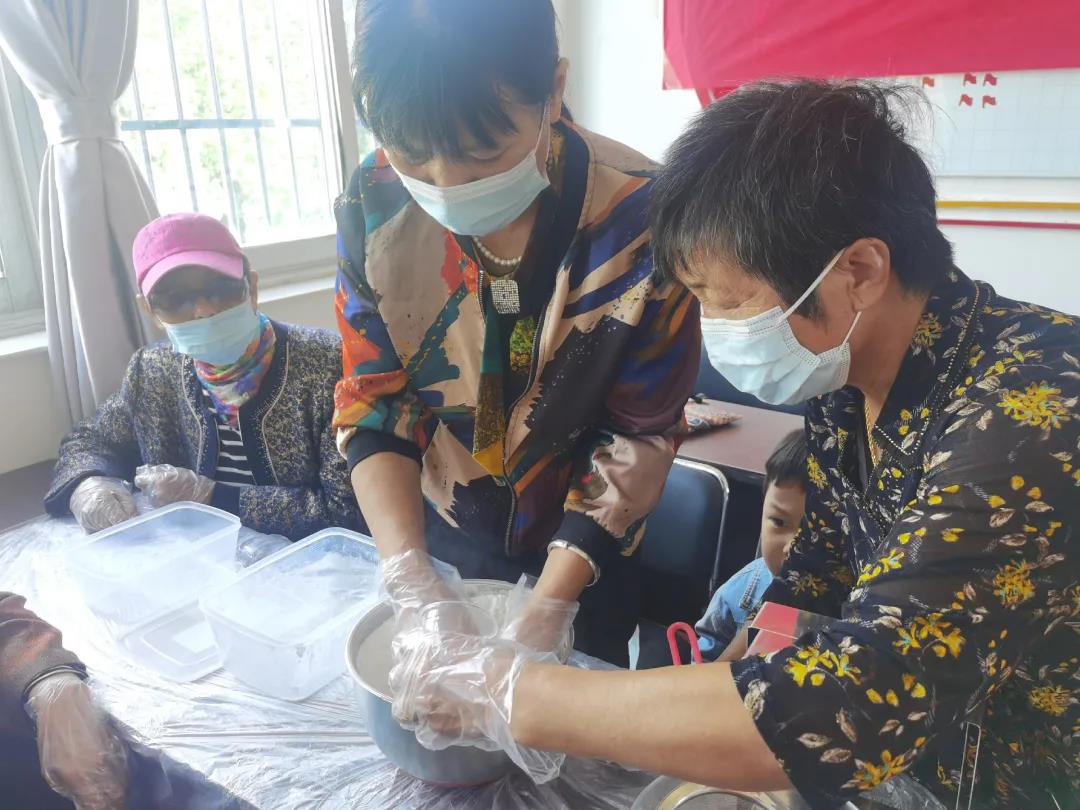 重阳节自古就有插茱萸、送重阳花糕的习俗。重阳节当日,孙庄社区居民学校组织老人们制作茱萸香囊,祈福避疫,共迎佳节。兴隆居民学校、花园居民学校邀请专业糕点师傅教大家制作重阳花糕,并将做好的花糕连同节日的祝福一同送到困难老人家中。