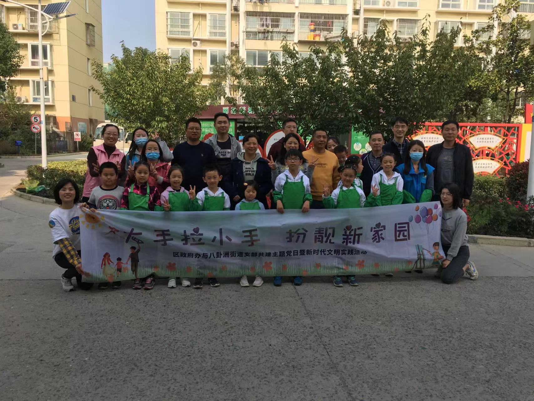 10月23日下午,八卦街道社区教育中心与八卦花园社区在丽岛新城正门广场处开展“大手拉小手 扮靓新家园”活动。