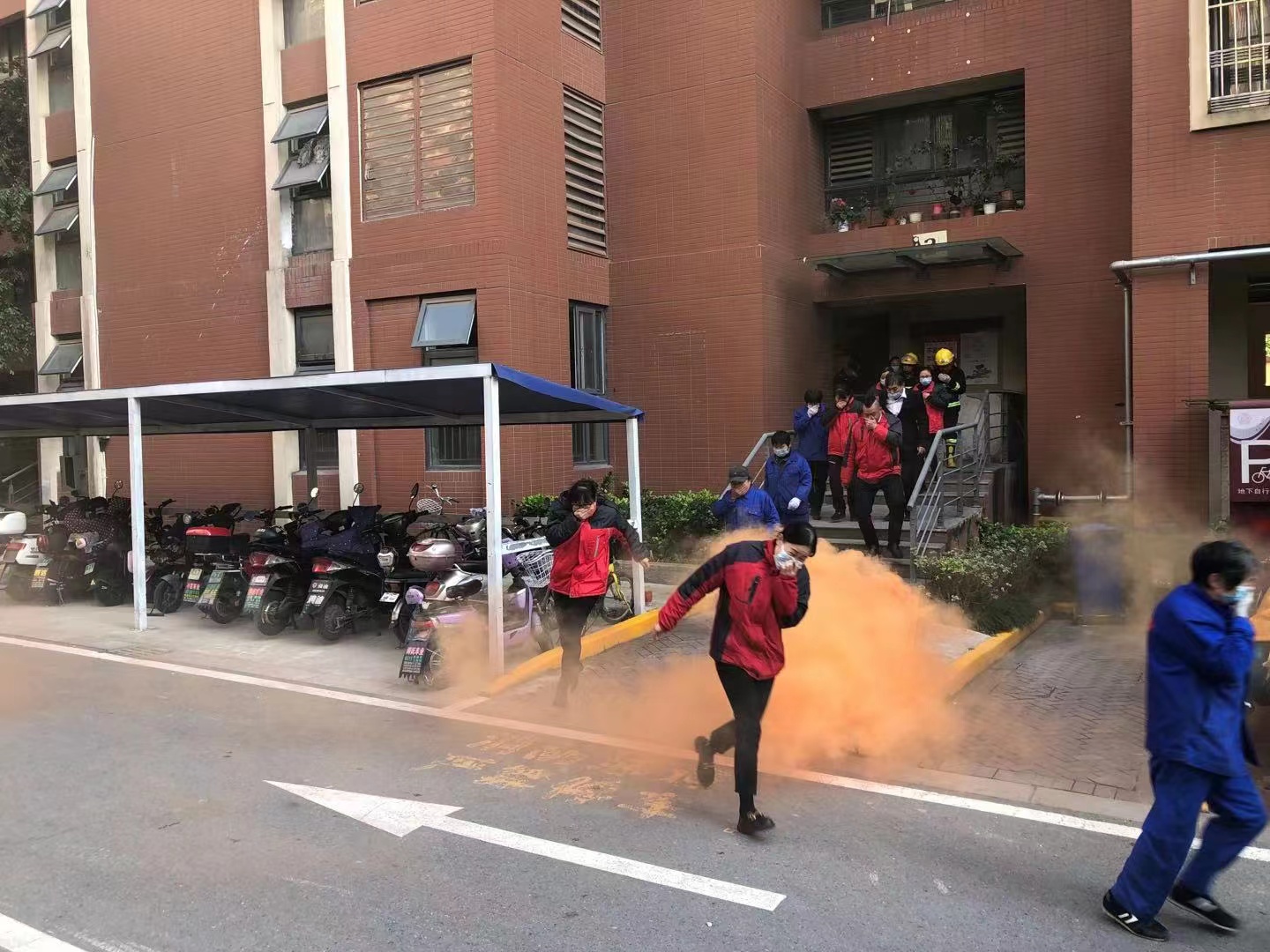 演练模拟在燕舞园小区居民楼内发生火灾,现场浓烟滚滚,消防救援人员组织小区居民逃离火灾现场。演练过程中,物业工作人员、社区居民在现场指挥部的指令下,掩住口鼻从楼内有序撤退。消防救援人员有条不紊地进行人员疏导、伤员救助、现场处置、环境监测等工作,让居民真切地体验到火灾现场真实环境,对火灾应急处置有了全面的了解。