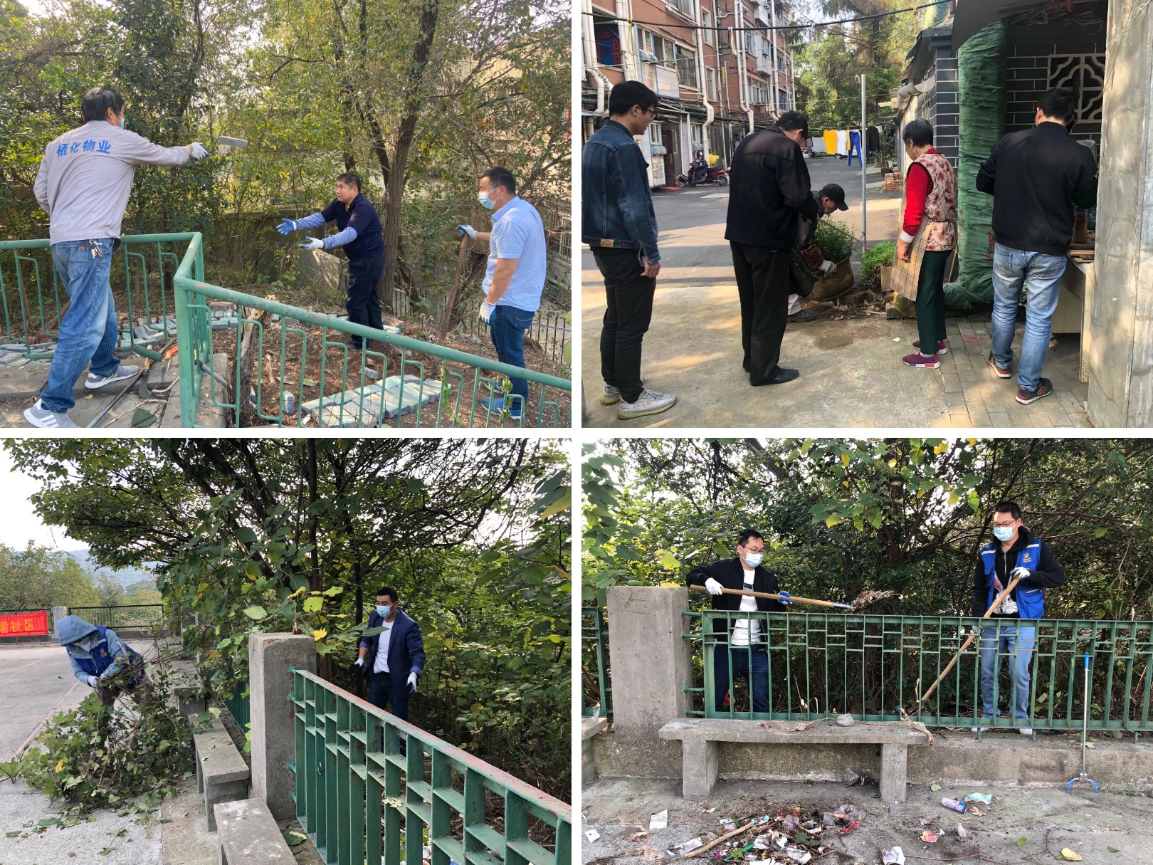 11月6日上午,栖化新村社区居民学校组织党员志愿者和小区物业联合开展环境整治行动。