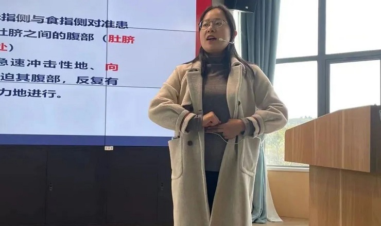 活动中,老师结合真实案例,通过PPT展示、实体操作、现场互动等方式从气道异物的处理、外伤出血的简单处理、骨折的初步处理、心肺复苏的处理和实施方式进行全面细致的讲解。她在讲解过程中强调:“时间就是生命,当发生有人遇险时,一定要在第一时间进行救助,珍惜黄金抢救的四分钟。”学员们在老师的指导下认真练习实际操作,老师对操作中存在的问题进行纠正与指导。