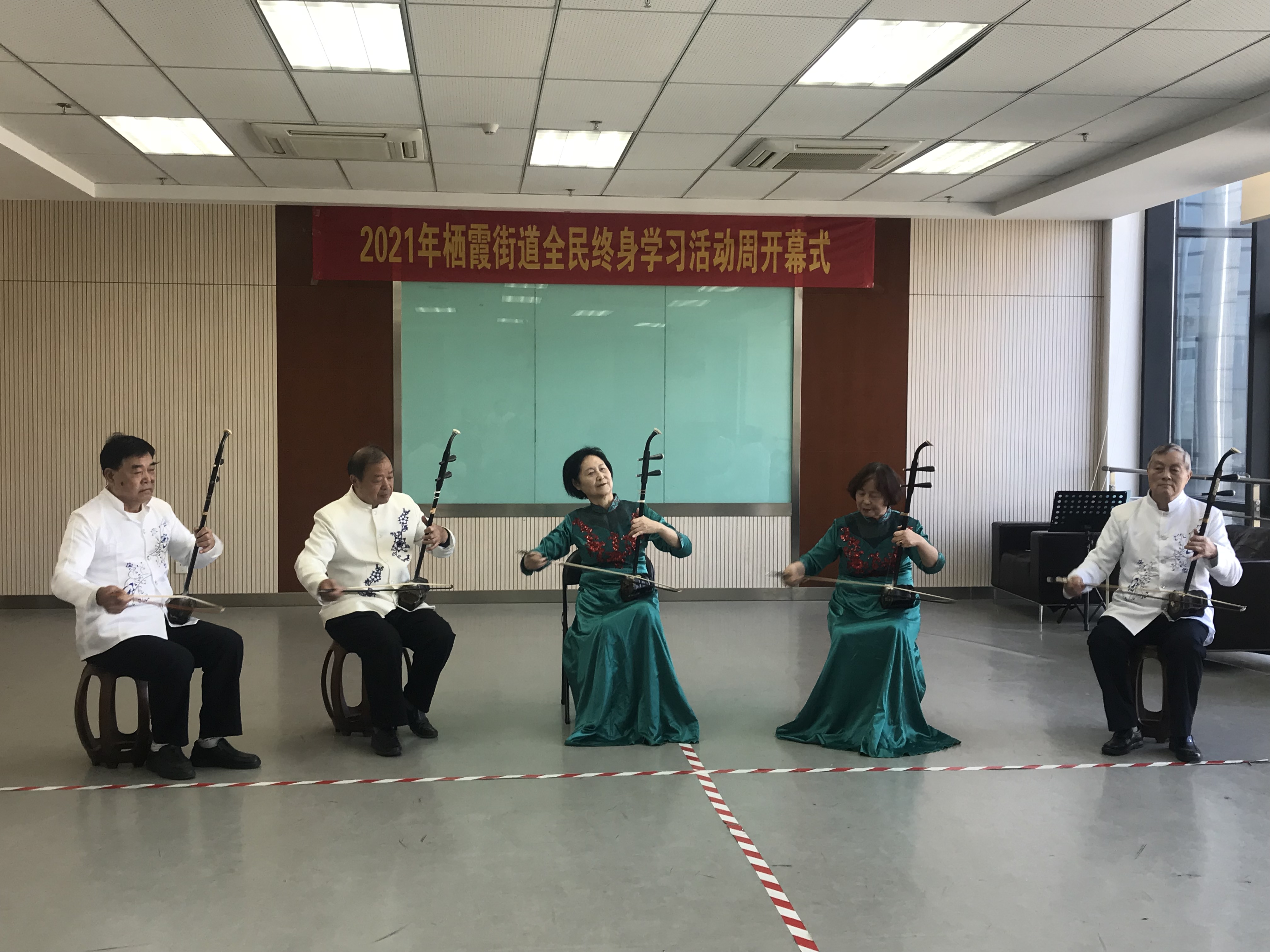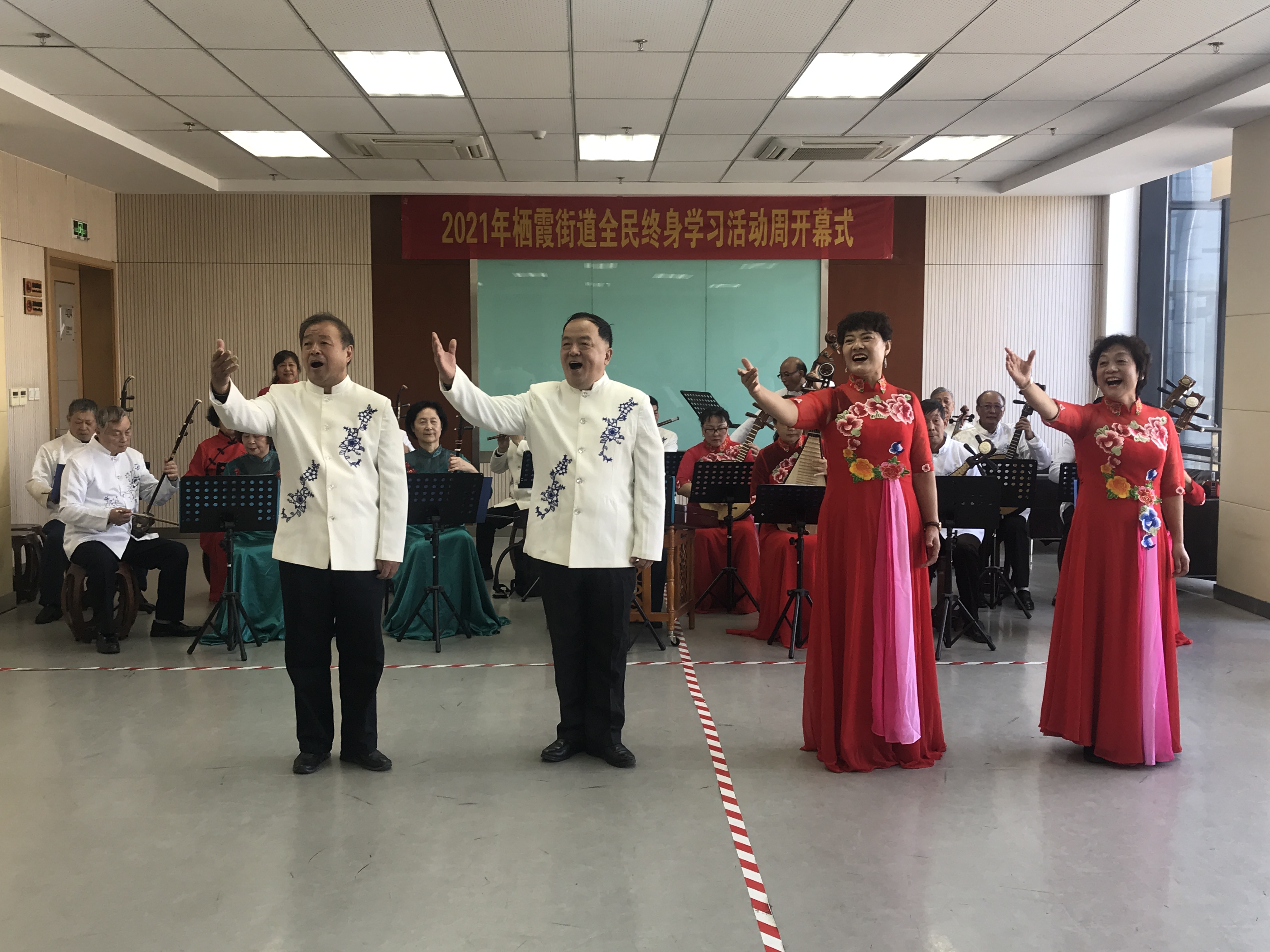 在“丹枫艺术团”表演的小合唱《万疆》激扬歌曲声中,栖霞街道2021年全民终身学习活动周拉开帷幕!