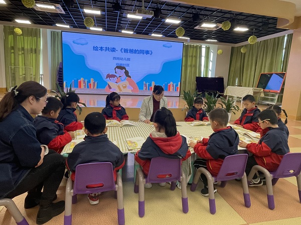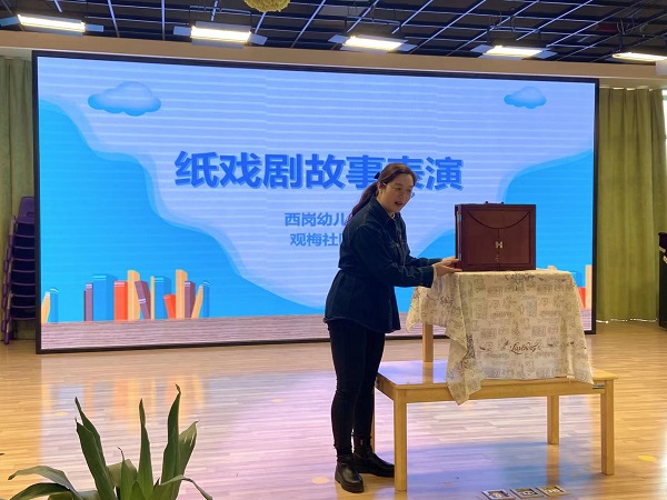 下午两点半,共建仪式在西岗幼儿园天佑路园多功能厅正式开始。观梅社区党委书记王静、西岗幼儿园党支部书记陆玲作为双方代表进行签约,双方就各自资源,下一步工作计划进行沟通交流,为今后开展共建活动,推进三全教育理念奠定基础。签约结束后,第一期活动正式开始,由陆园长为与会的家长和孩子们带来绘本阅读《爸爸的同事》,陈园长为大家带来精彩的纸戏剧表演《神笔马良》。