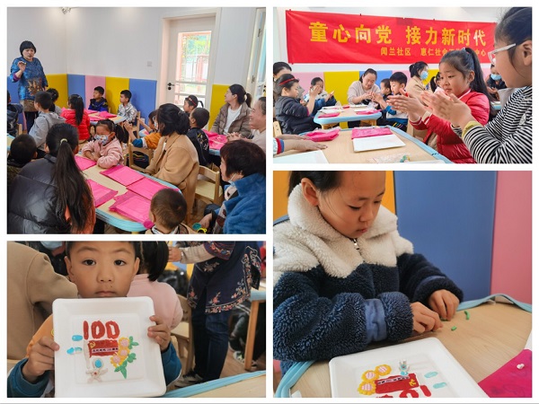 党旗飘飘,党在我心。11月20日上午9:30,一场以党建引领为主题的民间艺术面塑活动在闻兰社区与惠仁社会组织的精心策划下拉开帷幕。此次活动邀请到非遗老师:钱翠芳,作为非物质文化遗产传承人,在开场先给大家展示了几件面塑工艺作品,每一件都惟妙惟肖,精工细作,引来小朋友们羡慕的目光,随后老师又向大家讲解了面塑的起源,以及制作面塑的原料的组成成分。老师运用风趣幽默讲授方式,孩子们也听得聚精会神。终于到了本次活动的重头戏动手做面塑了。老师先介绍本次面塑制作的主题:“庆祝建党100周年”,以及制作过程,随后通过讲述党的100周年征程,使党在孩子们心中又增加了一份力量。最后在老师的指导下孩子们制作出属于自己的面塑作品,在阵阵欢声笑语中结束了本次活动。