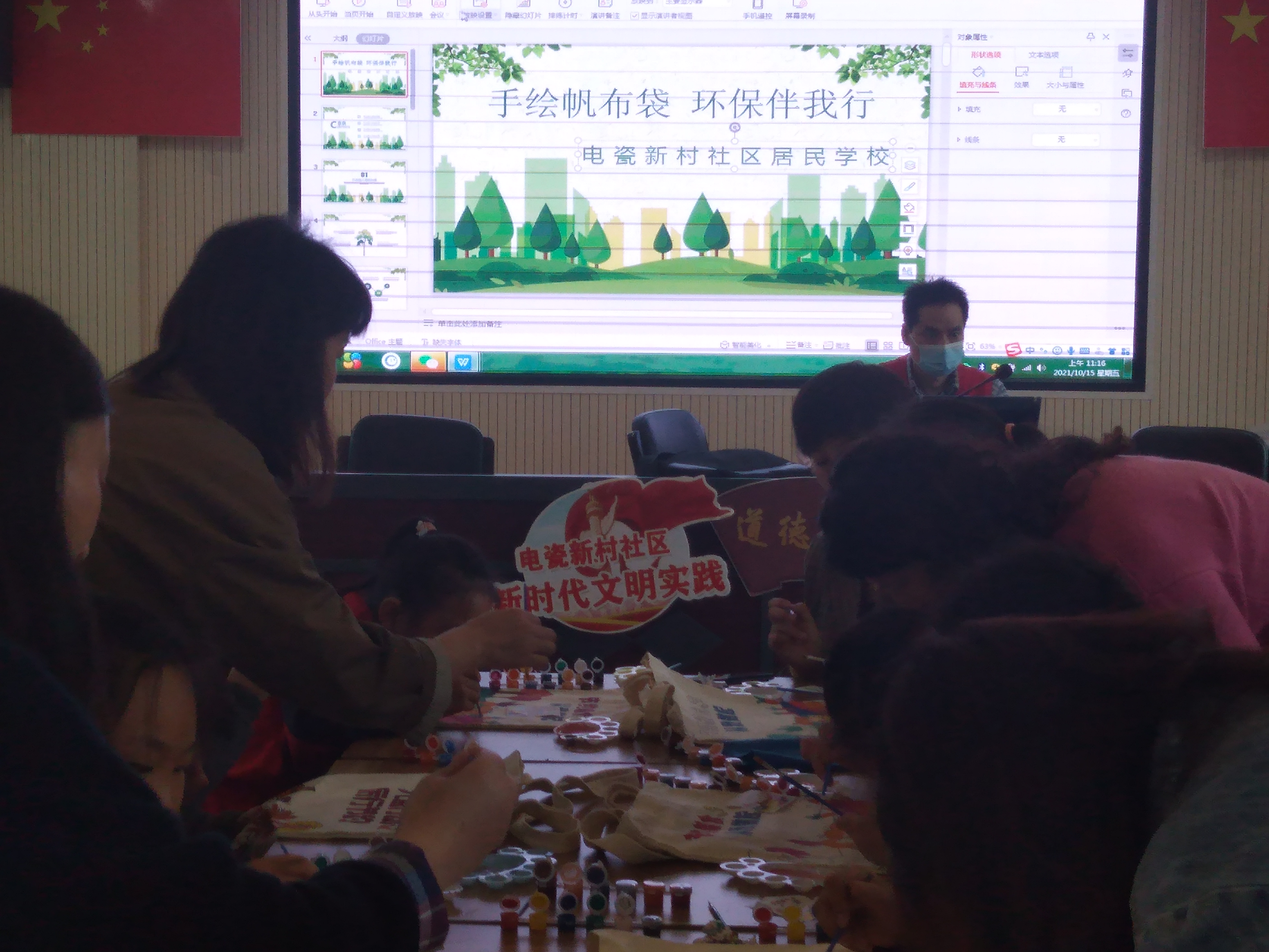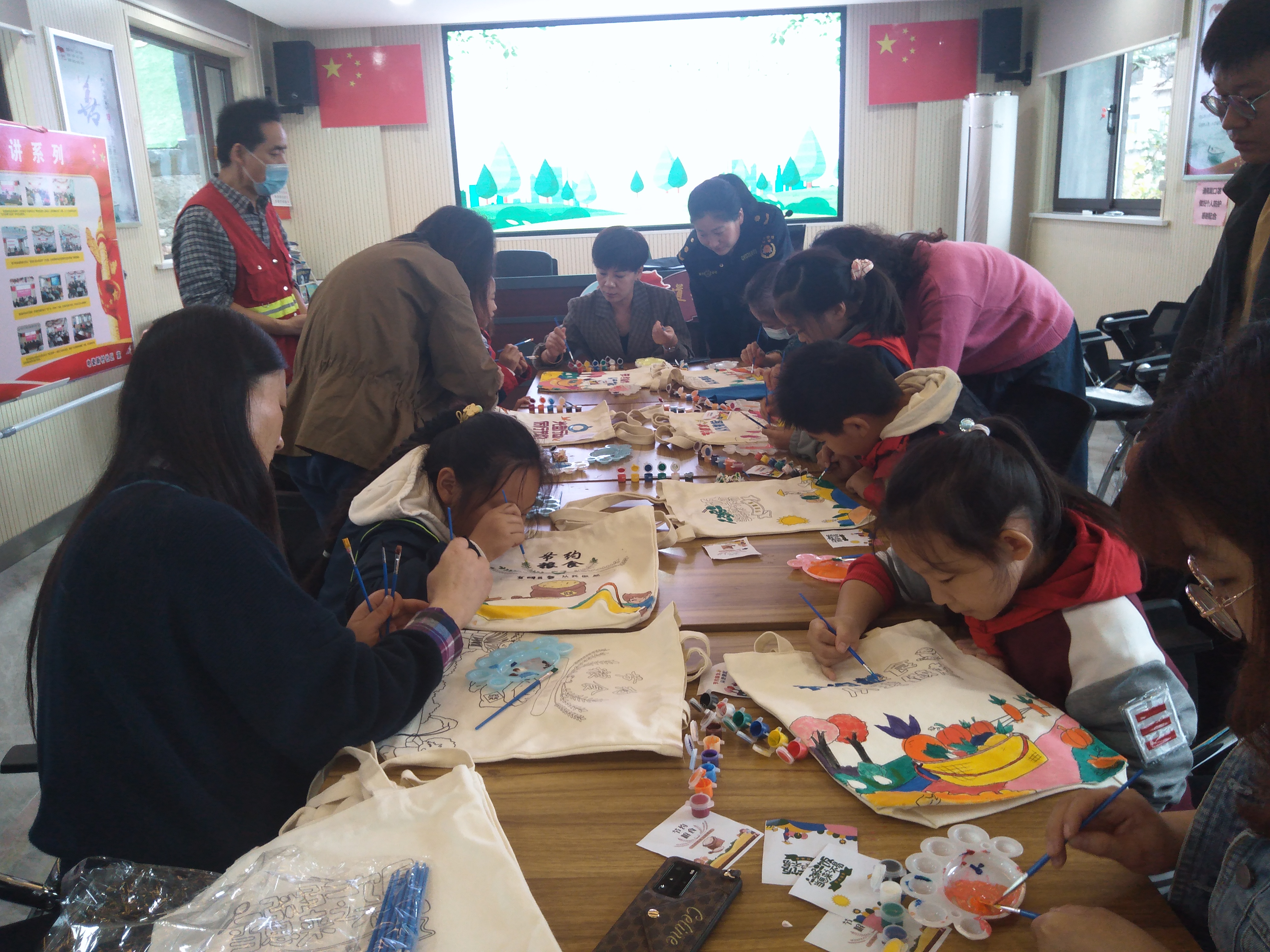 善学栖霞【喜悦燕子矶】电瓷社区居民学校开展亲子活动 手绘帆布袋 环保伴我行