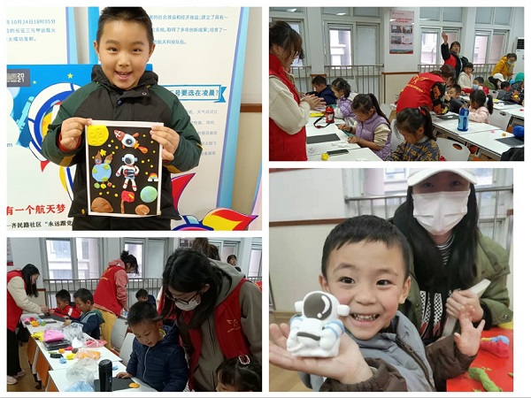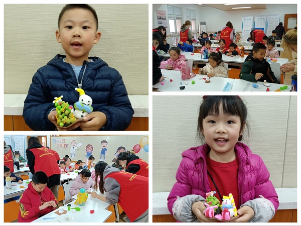 12月11日的活动主题是太空,志愿者们提前准备好各种颜色的粘土材料和制作工具,帮助小朋友们塑造太空人和飞船的造型,并教小朋友如何混色。大家别出心裁捏出了各式各样的宇航员,并点缀上自己独特的色彩缤纷的小饰品,制作成一个个可爱动人的宇宙飞船和宇航员。在拍完成品图后,小朋友们愉快地捧着作品回家。