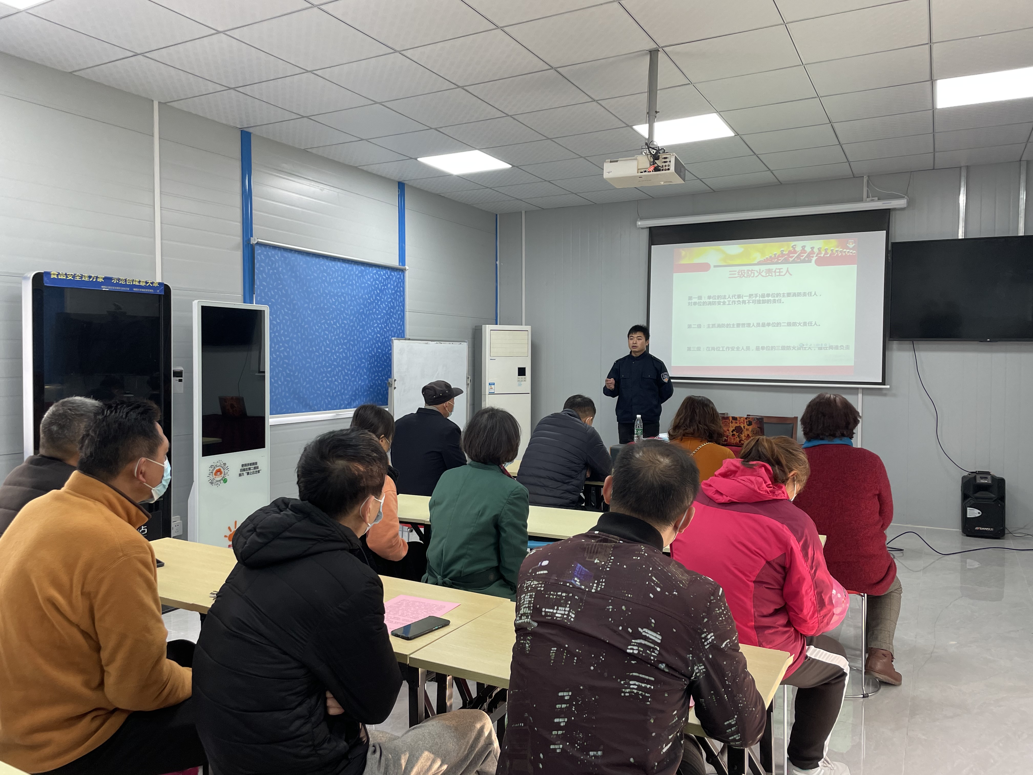 为进一步普及消防知识,提高辖区内各商户预防火灾、火场逃生自救能力和灭火器材的使用。吉祥庵社区居民学校特邀安磊消防的教官于2021年12月10日上午在社区会议室开展了一场“生命至上、安全发展”消防安全知识讲座,参加此次培训的有辖区个体户、企业负责人、居民代表等。