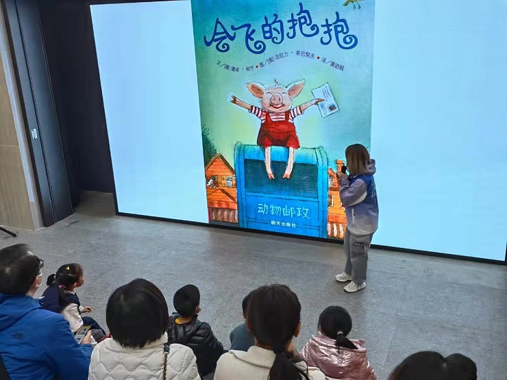 活动中老师带来了《会飞的抱抱》绘本故事分享,“邮寄拥抱”的过程中,一个拥抱接着一个拥抱,信件成了一个爱的接力棒,邮寄也成了一场爱的接力赛。现场,孩子们与父母仔细聆听,在与朱老师的互动中,感受到了幸福和快乐。
