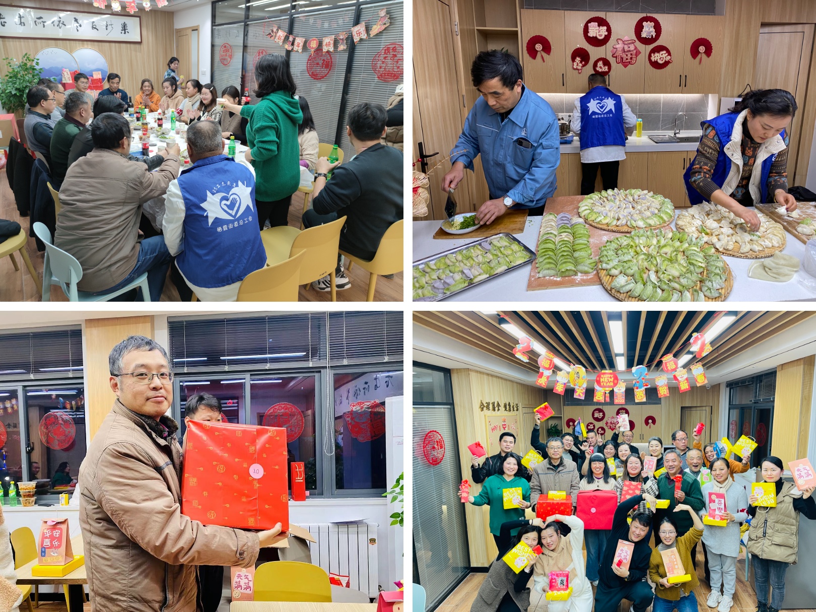 过大年,吃饺子。下午,工会成员们早早地买来了蔬菜、肉和面粉,大家一个个撸起袖子,和面、剁馅。饺子皮擀好后,先在掌心摊开,放上饺子馅,再把饺子皮合拢,捏成猫耳朵一样的形状,美味的饺子就大功告成了!当大家吃起一个个热腾腾的饺子时,每个人都开心地说:“自己包的饺子吃起来就是香,大概是因为里面包进了我们满满的爱吧!”
