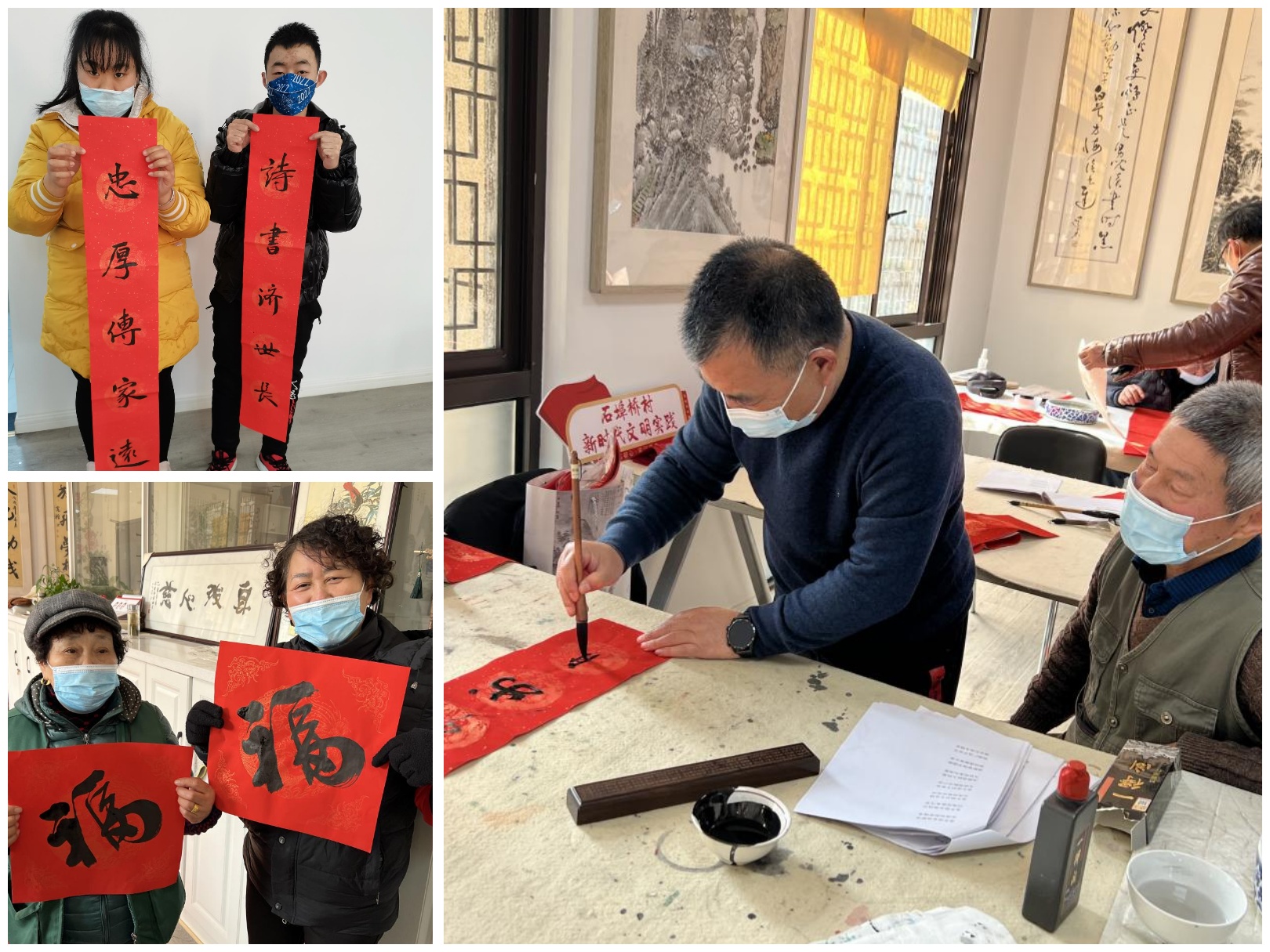 1月18日下午,石埠桥村社区居民学校依托新时代文明实践站文化教育平台,邀请书法家们在石埠湾花园小区残疾人之家挥毫泼墨,为小区群众书写春联和“福”字,用传统文化方式为即将到来的农历虎年寄托祝福,把美好期盼融进每一个福字、每一副对联中。