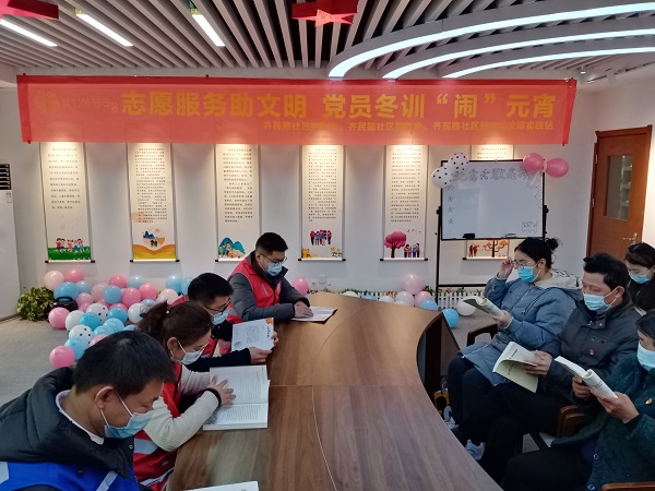 2022元宵佳节来临之际,为弘扬中华民族优秀的传统文化,创新党员“ 冬训”形式,2月15日,齐民路社区党总支、新时代文明实践站组织党员、青年志愿者在社区图书室开展了“志愿服务助文明 党员冬训‘闹’元宵”系列活动,大家欢聚一堂,一起学党史、包汤圆、唱红歌,感受元宵节欢乐喜庆的氛围。