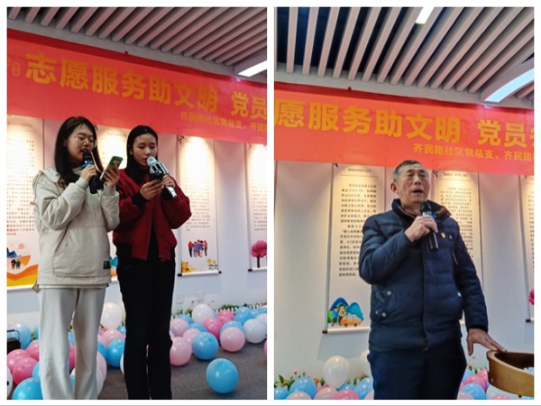 “红歌热唱”环节,老党员和青年志愿者们更是落落大方,大方展示自己的“歌喉”。《山丹丹花开红艳艳》、《红梅赞》、《我和我的祖国》……让活动现场充满节日的欢乐,更有不擅唱歌的大学生余鎏欣为了挑战自我,选择演唱共青团团歌《光荣啊,中国共青团》,一番举动也赢得了全场的欢呼。