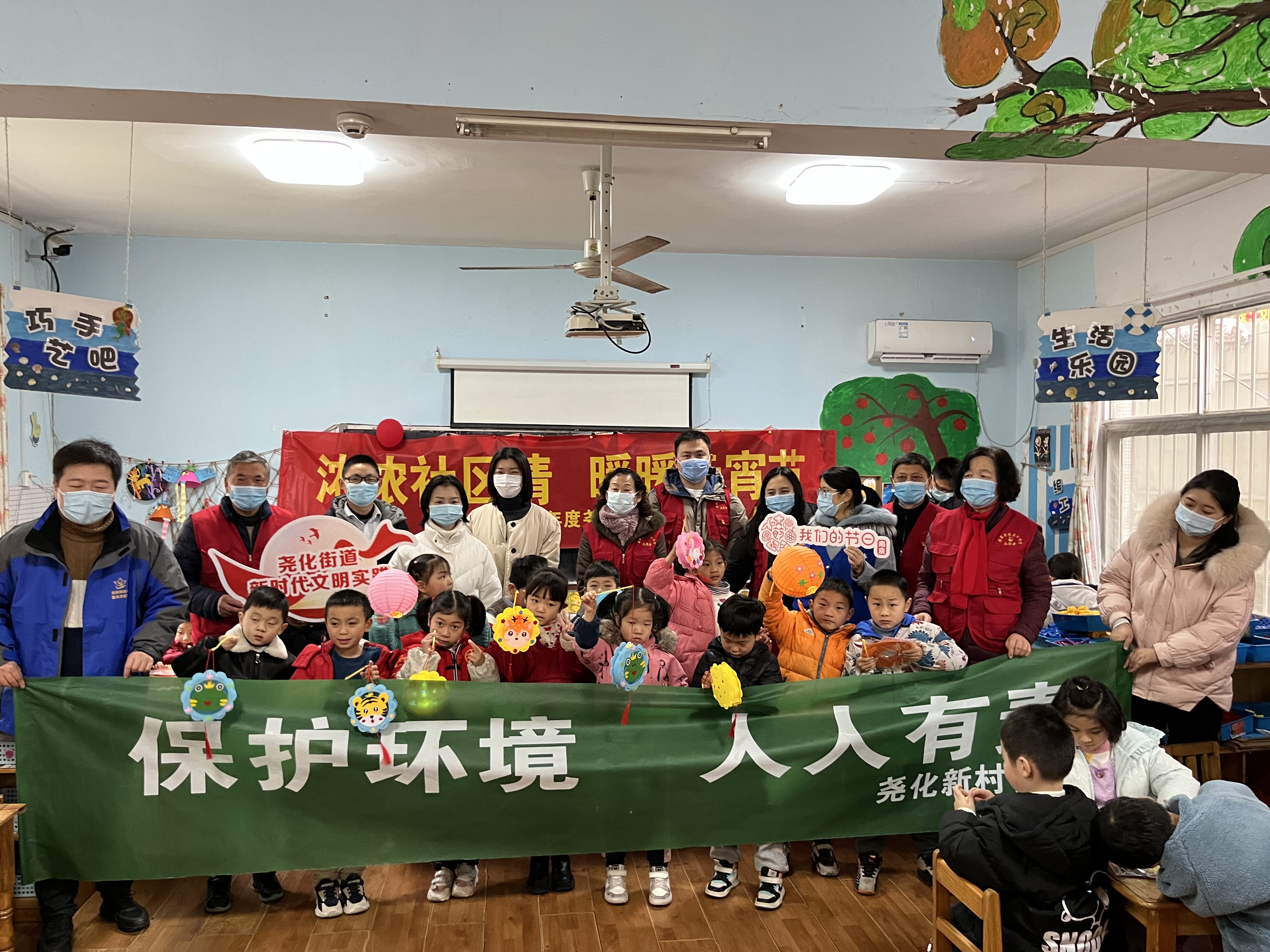 2月15日,是元宵佳节,栖霞区尧化街道尧化新村社区举办“弘扬中华传统,点亮环保灯笼”环保主题宣传活动,以实际行动践行“青山绿山就是金山银山”,营造良好的生态文明建设氛围,呼吁辖区居民从身边点滴做起,自觉参与环境保护。
