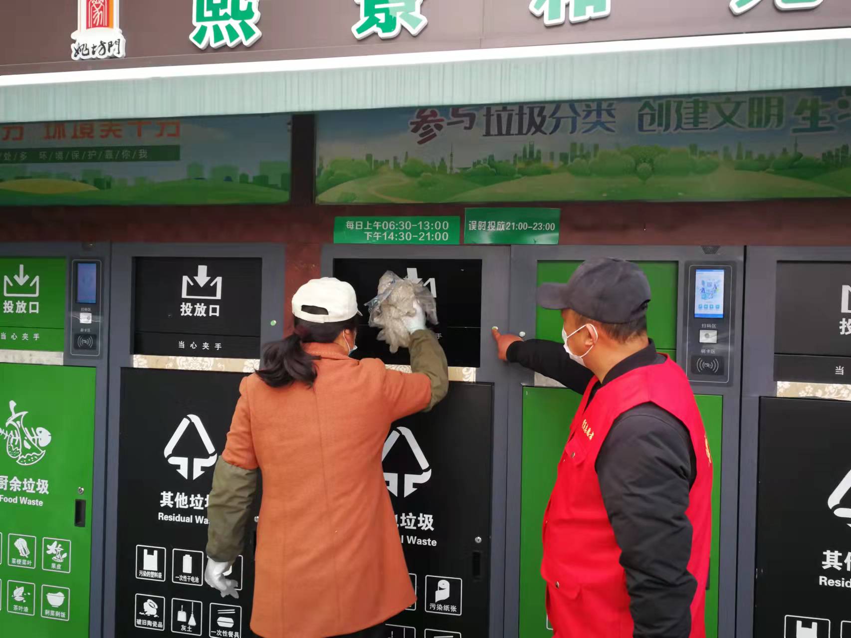 鉴于目前部分居民还未开工,垃圾投放量持续增多,除了增派志愿者加强“桶边值守”。在做好现场引导,纠正居民不规范投放行为外,工作人员还及时对再生资源箱内的回收物进行整理、清运,为居民前来投放提供更多空间。