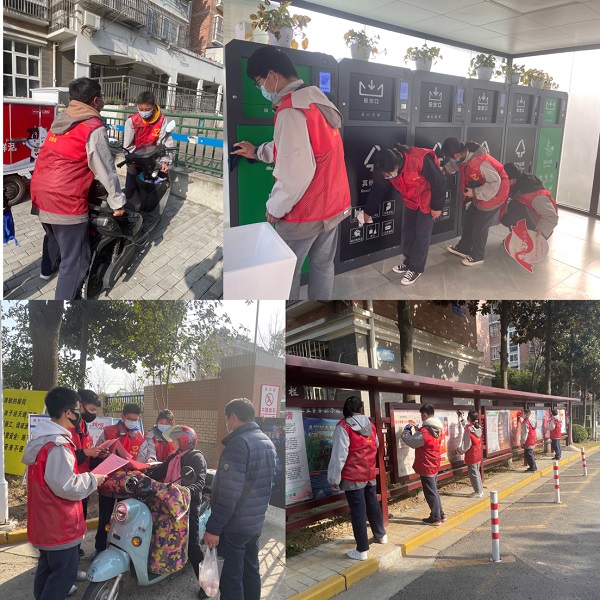 活动伊始,社区志愿者为学生们讲解垃圾分类的相关知识,教孩子如何辨别垃圾类别并传授垃圾分类顺口溜。学生们还踊跃举手提问,分享自己家中垃圾分类的小故事。随后,学生们分组开展志愿活动,有的向过往居民发放印有垃圾分类、防疫知识的宣传单,有的拿上抹布、扫把等工具,清洁垃圾房的垃圾箱与宣传栏等;清理公园绿化带内的纸屑、废弃饮料瓶、烟头、落叶等垃圾,还有的摆放不文明停放的非机动车。