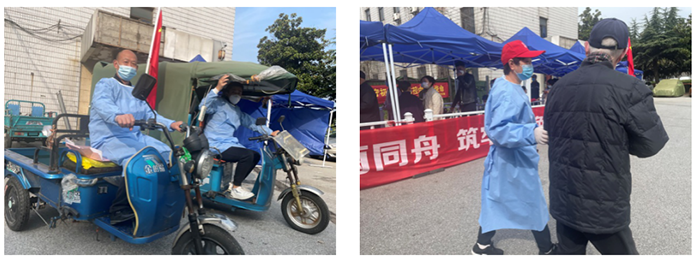 双向奔赴,风雨同舟。“你们太辛苦了,还需要志愿者吗?我加入!”青年小周在排队做核酸时就地加入了志愿队伍,从白天站到黑夜,没有一句怨言;王立全、崔广斌翁婿二人骑出家里的两辆三轮车主动要求加入物资派送队伍,在楼栋间一趟又一趟往返;企业家居民主动请缨开出自己的豪车作为物资运输车,丝毫不在意肉、菜弄脏了后备箱;梁都侠、王红梅等阿姨看着志愿者们每天忙的只能吃冷掉的盒饭,召集几位阿姨各自在家分工调陷、和面,做了热腾腾的饺子和蛋饼送给志愿者们吃……一幕幕暖心举动在这临时管控区内不断上演,支部在服务居民群众的同时,也被群众的温情时刻滋润着,淡化了隔离的界限,拉近了基层党组织和居民群众的距离。