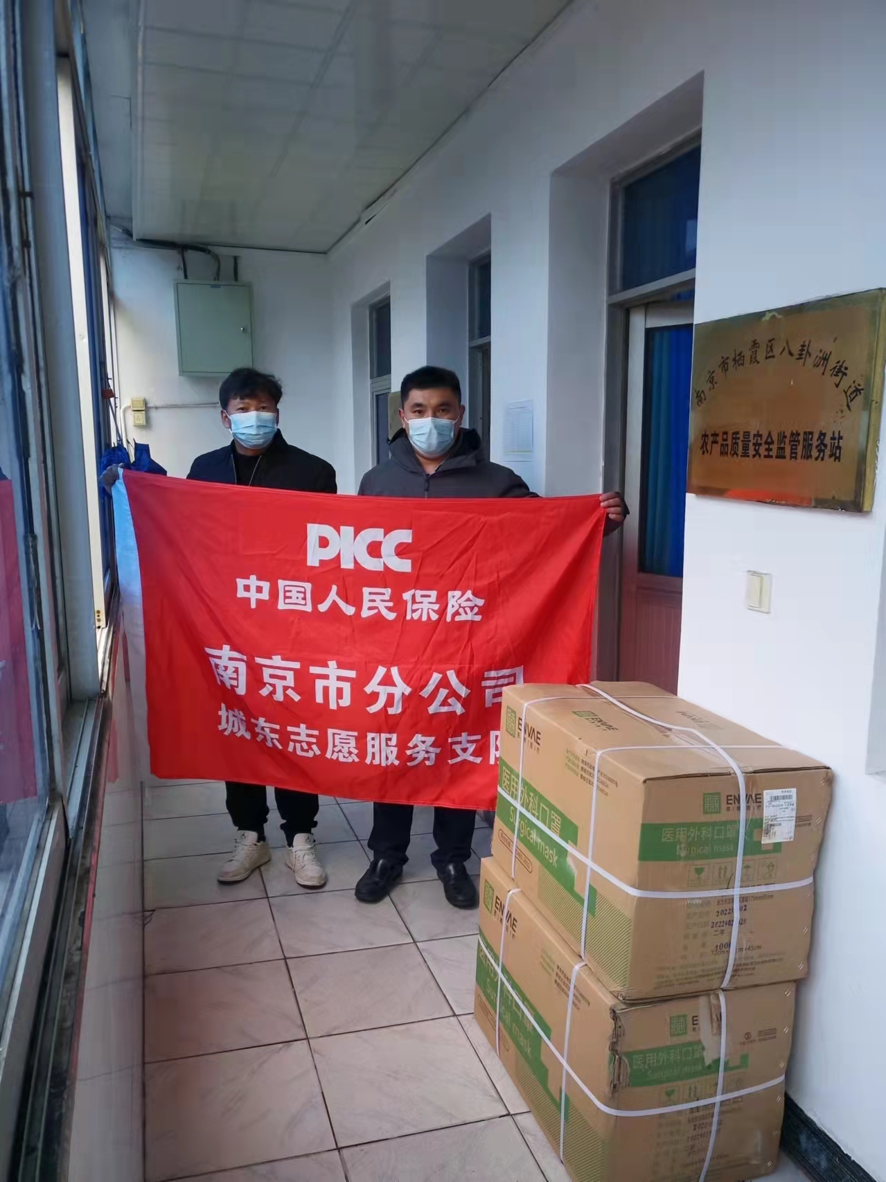 3月22日,中国人民保险南京市分公司携带防疫物资来到八卦洲,通过农业农村办向洲内疫情防控一线单位捐献防疫口罩8000个。