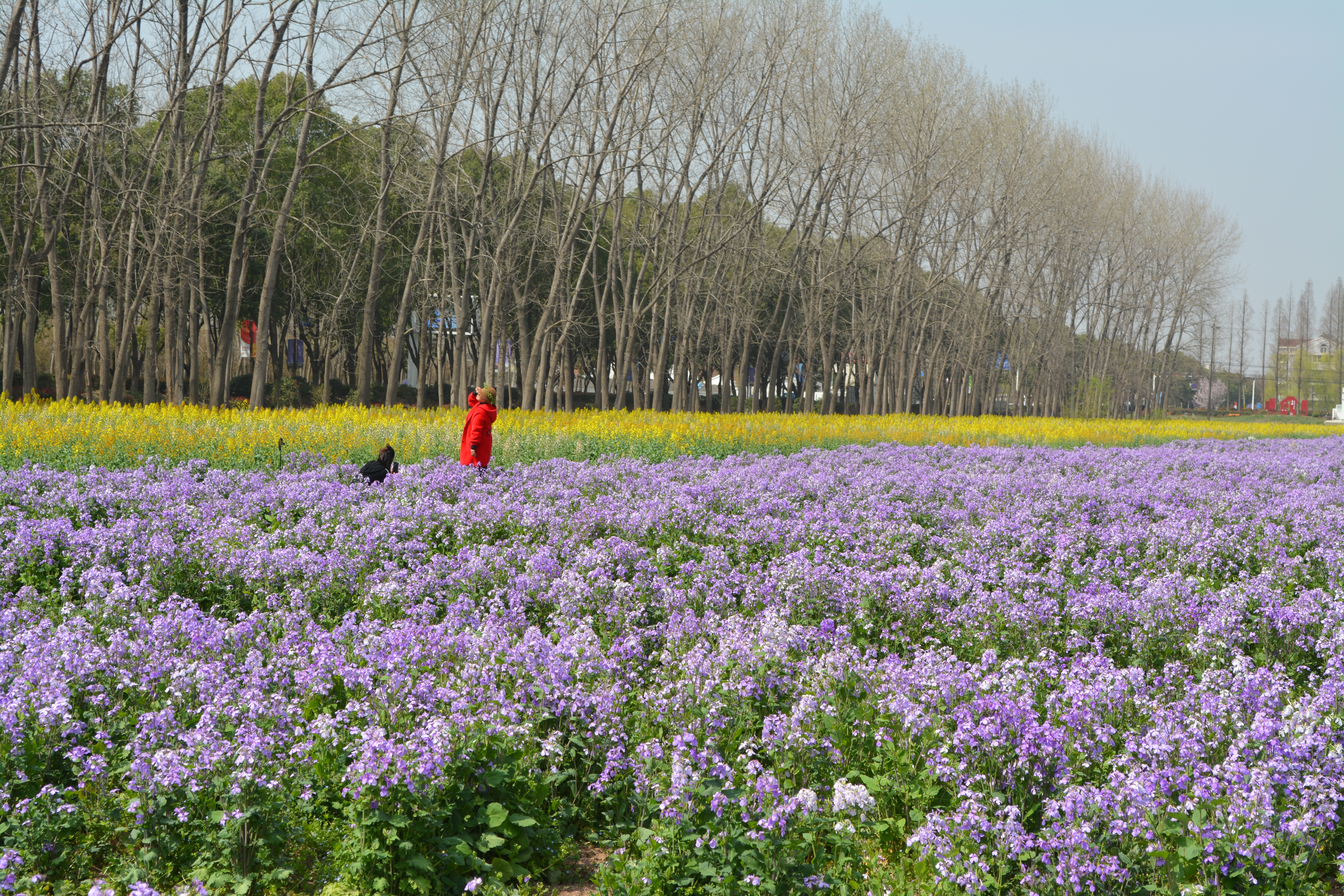 现场看到,这两种花种在一起,意境很美。油菜花一片明黄,而二月兰的花丛 " 海拔 " 相对较低,蓝紫色柔和典雅。之所以将这两种植物混种,是因为它们的花期大致相符,都在每年的三月中旬开花,四月份是盛花期。花期都相对长,一直持续至五月。此外,这两种颜色还形成了强烈的视觉冲击力,让人觉得美得震撼。