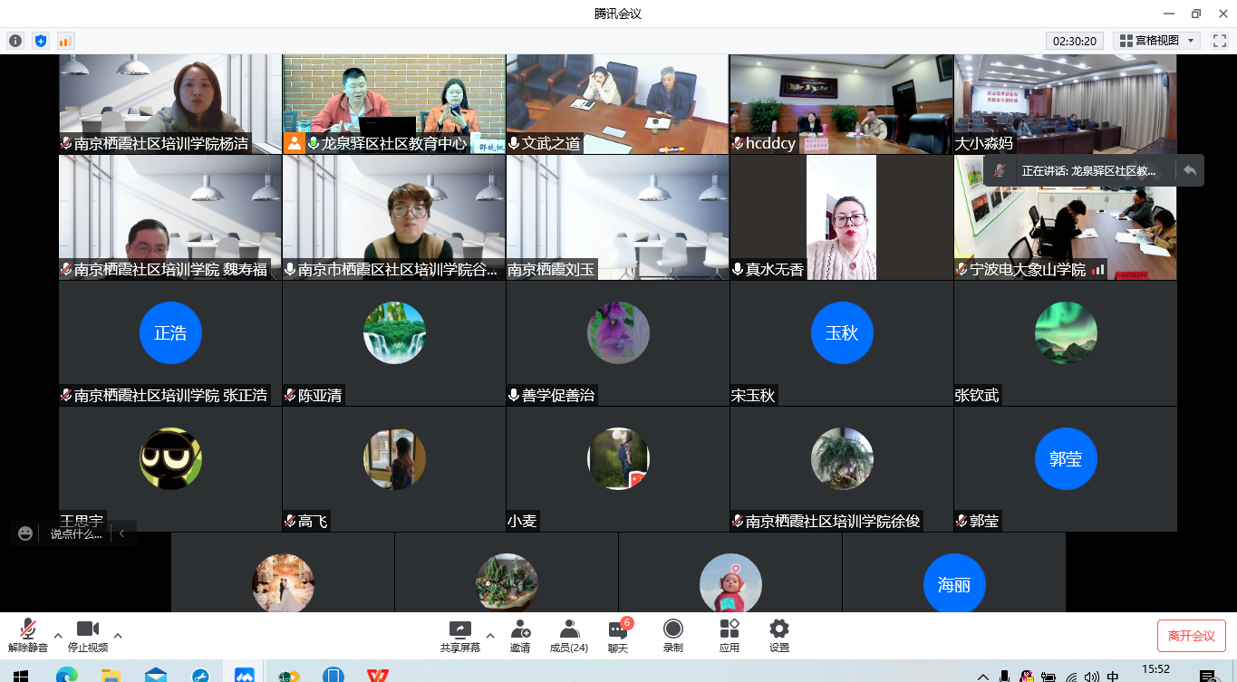 3月21日下午,“善学促善治”区域终身学习发展共同体组织召开关于《社区教育助力社区治理问卷调查报告》专家指导培训视频会议。为积极响应共同体号召,认真做好《社区教育区域合作助力社区治理模式的实践研究》课题研究,为高质量开展本课题研究,向社区教育专家学习先进经验,栖霞区社区培训学院徐俊校长、谷雨娥副校长以及全体社区办及教科室老师参加了本次会议。