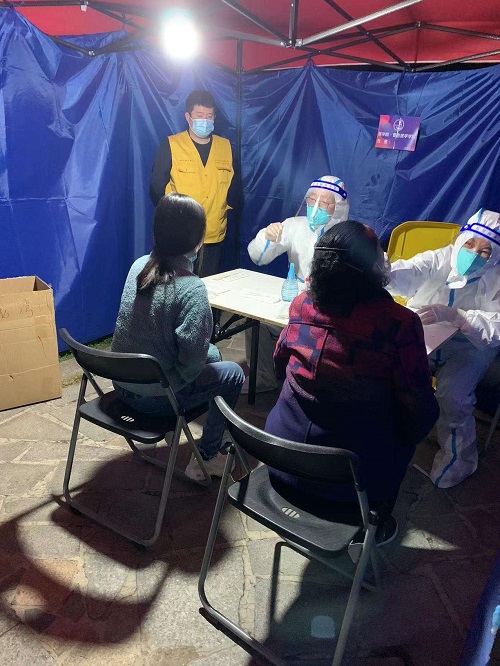 除了核酸检测,志愿者们在各小区门岗积极帮助大家测量体温、查看健康码、询问行程史,用贴心服务守护群众健康。