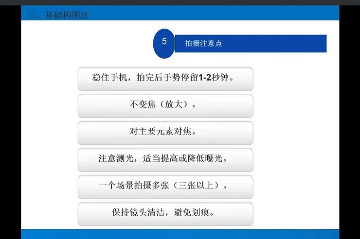 接下来,还讲解了手机摄影知识,老师从手机镜头的使用方法到各个系统下的连开模式、全景模式、HDR模式,再到如何对焦、利用光线等方面内容进行详细讲解,让大家初步掌握了手机摄影的基本要领。