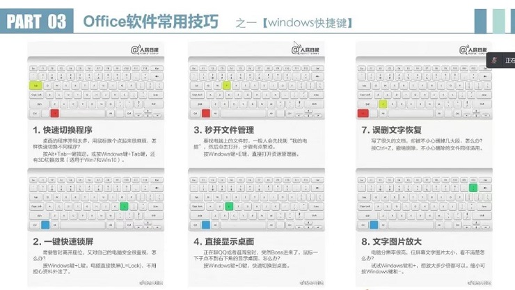 老师边讲解边操作,形象生动的为我们展示了如何正确使用wps等软件。讲解了硬件和软件的功能。例如office软件常用技巧,如何导入图片、蒙层、思维导图等。
