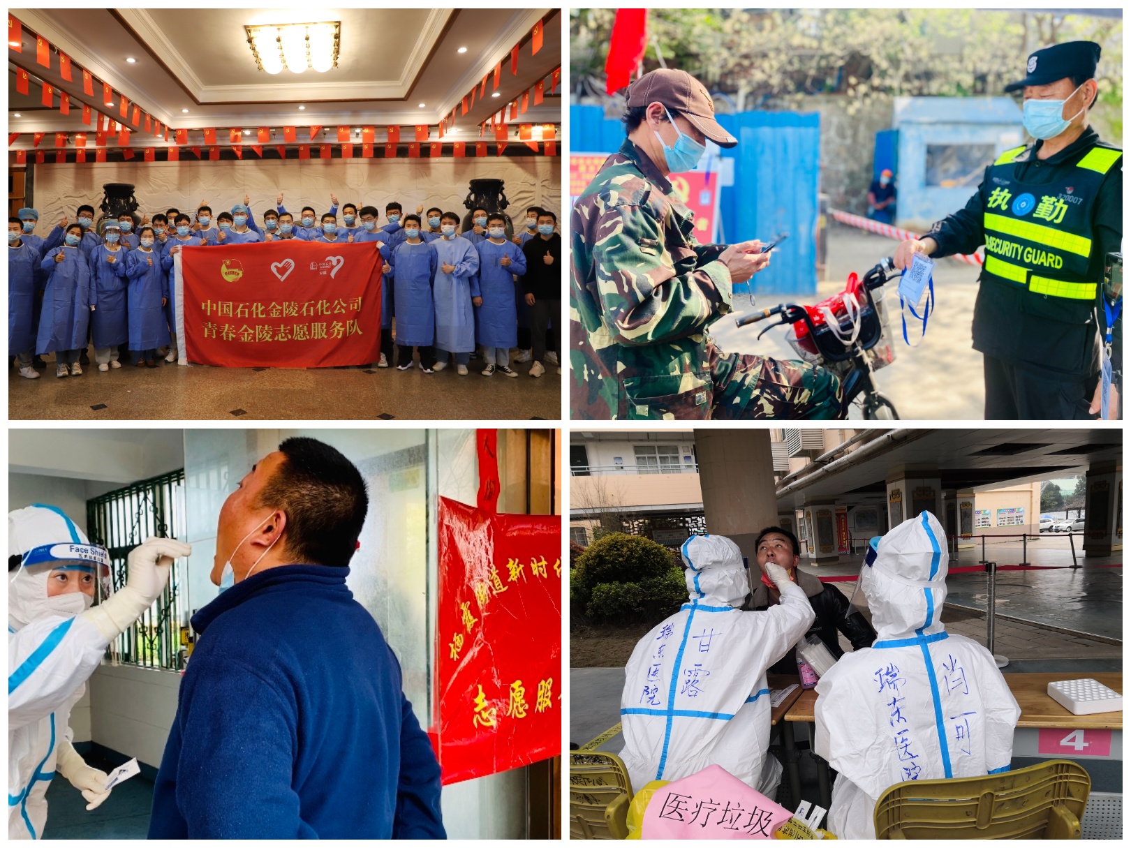 当听说社区全民核酸工作人员人手不足时,金陵石化立即行动,第一时间发布动员令,每轮核酸均招募约60名员工参与志愿服务,在社区的业务指导下主动包揽2个核酸检测点的秩序维护、扫码登记等工作。而现场的“大白”也是属地单位瑞东医院的医生们,从消毒到把样本装入采样管中,这样的动作他们每天需要重复几百上千遍。“共同‘栖’待摘下口罩相见的那天”是他们最大的愿望!